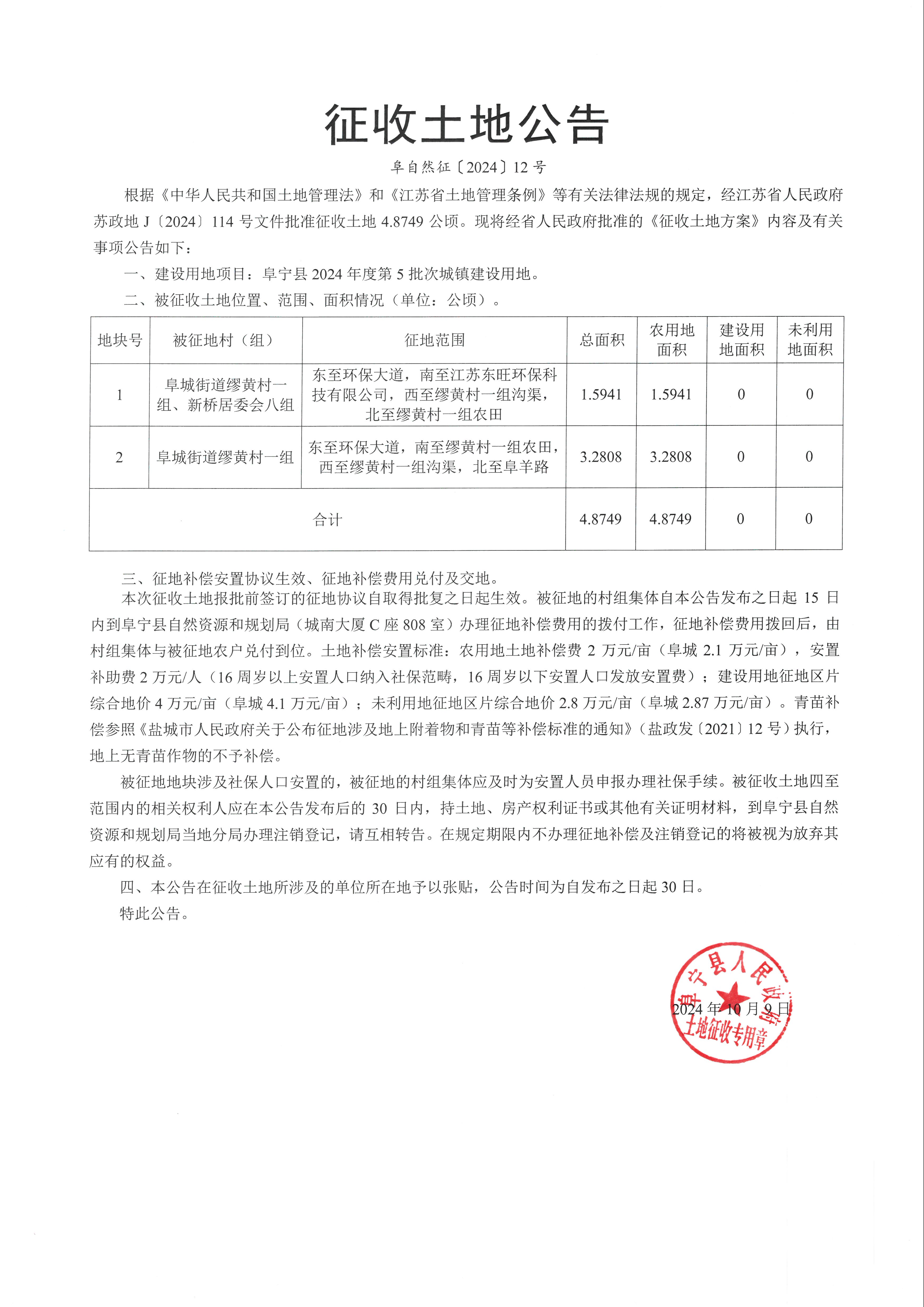 征收土地公告(阜自然征〔2024〕12号)