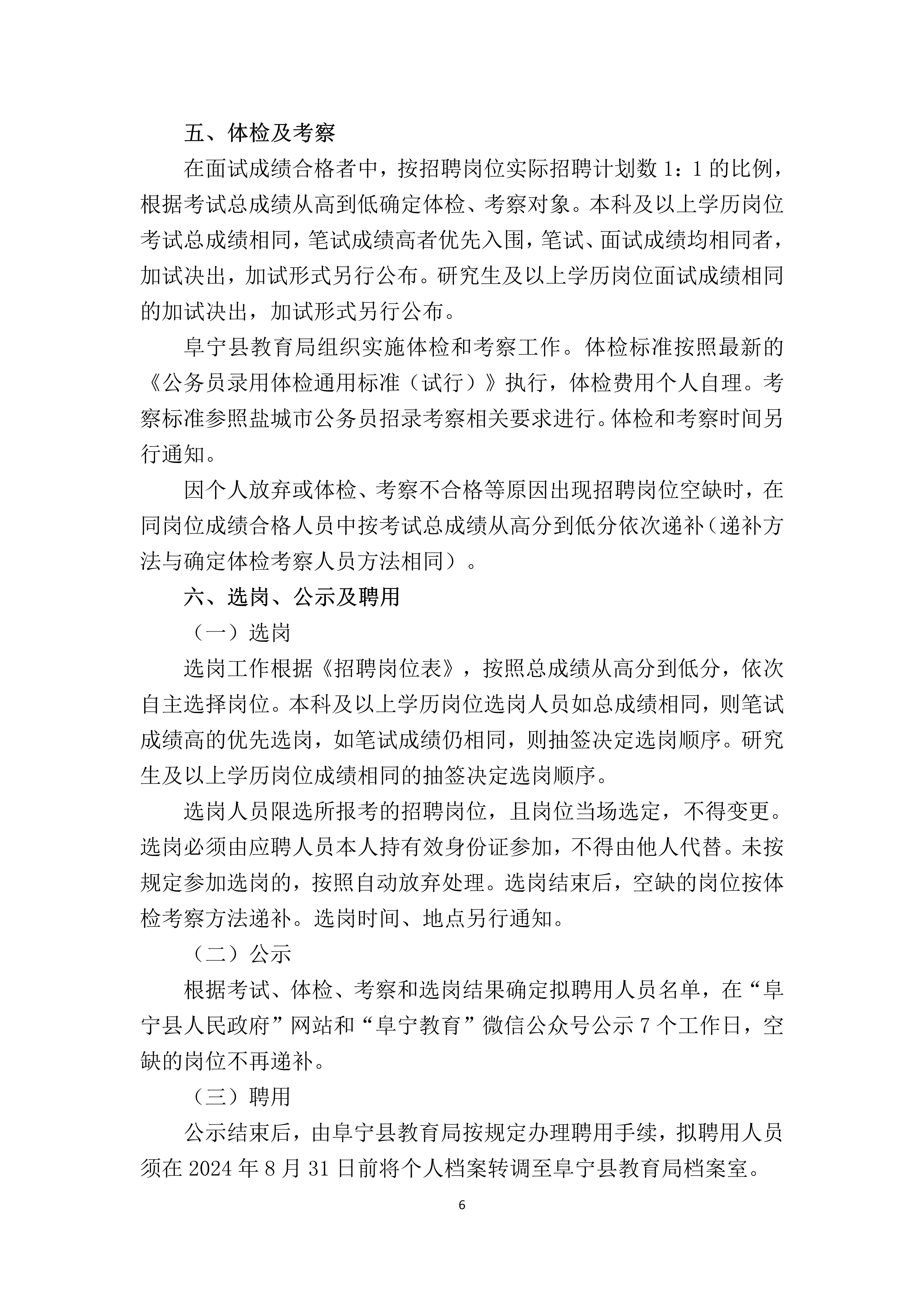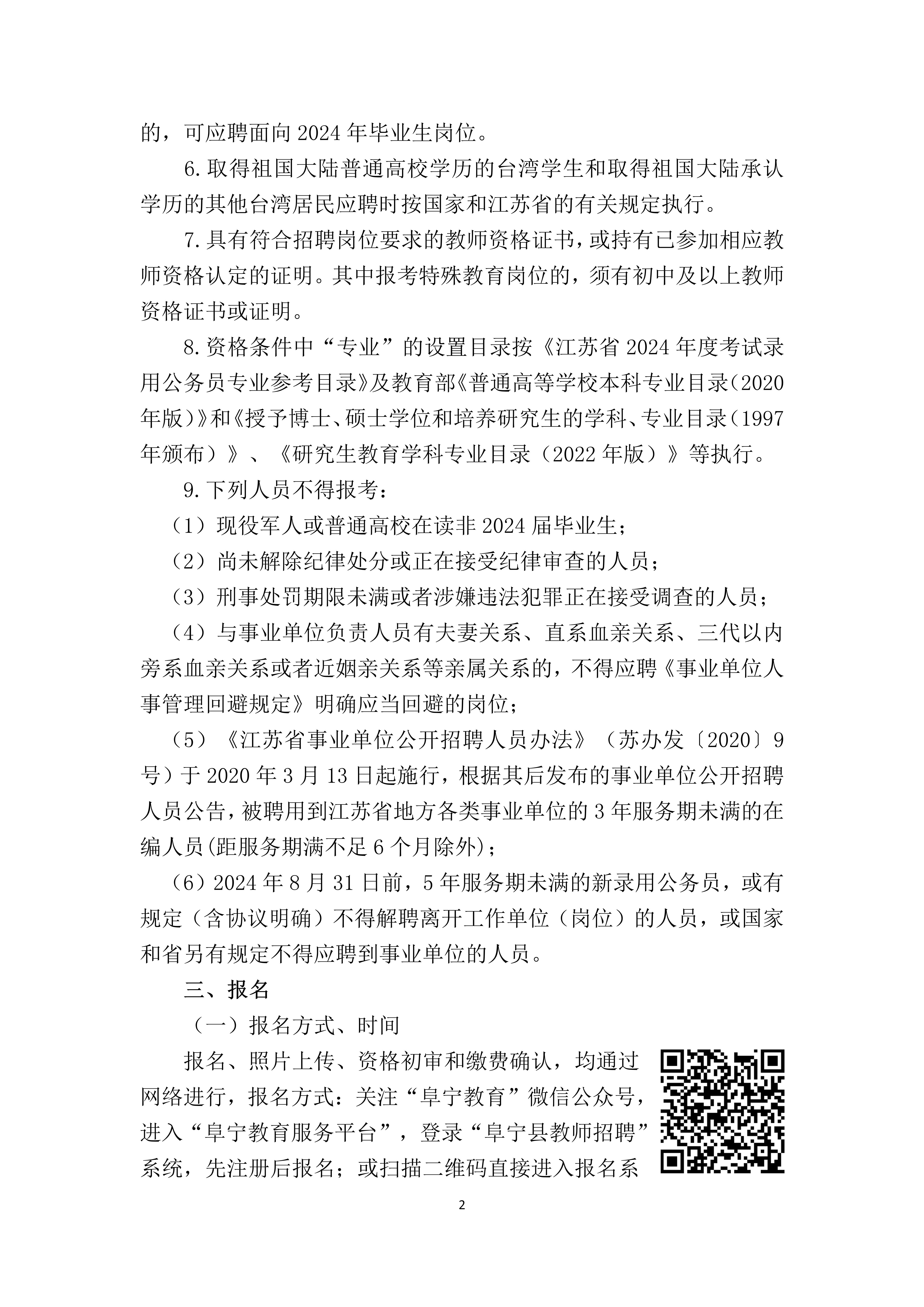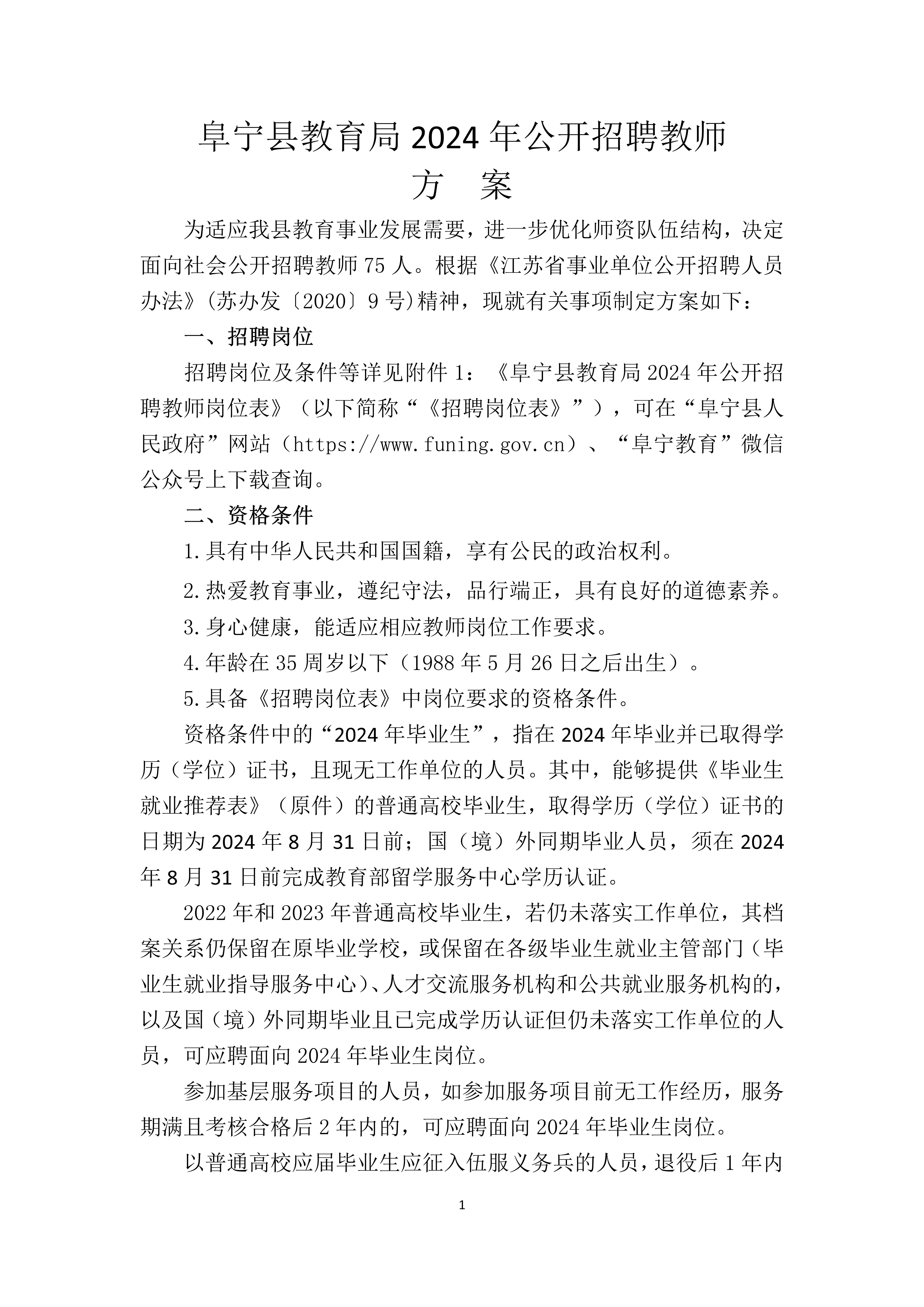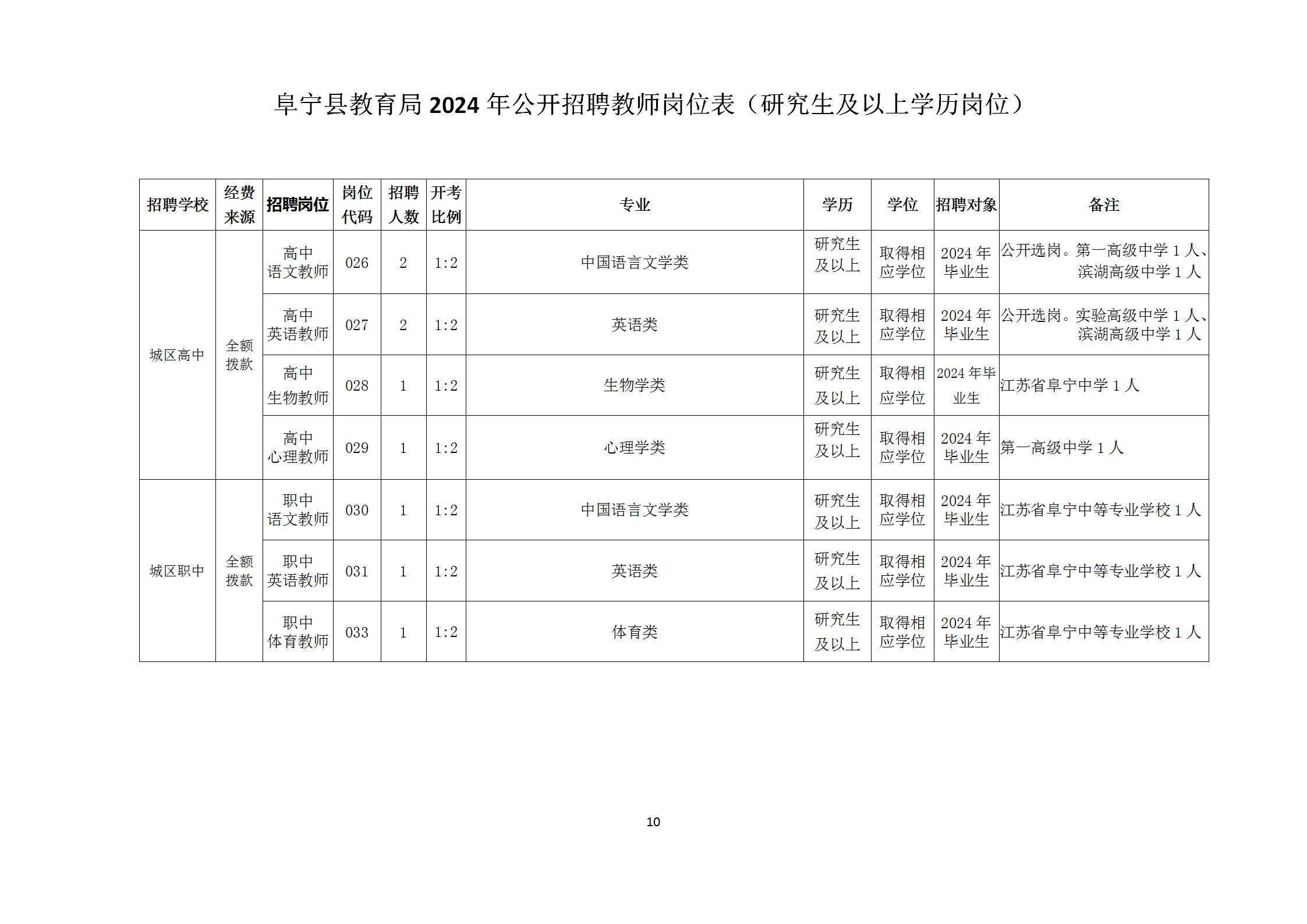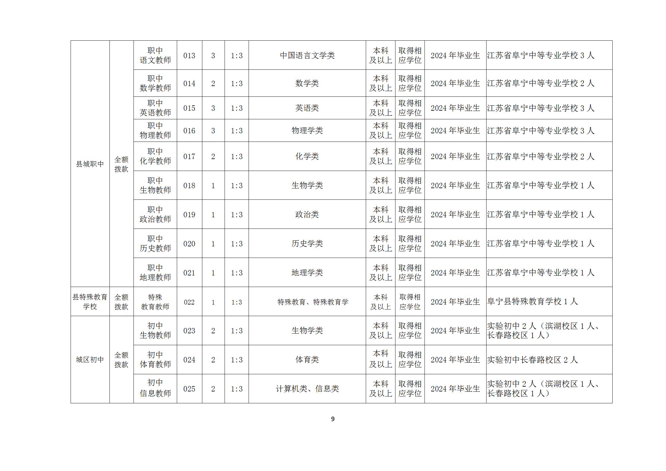 阜宁县教育局2024年公开招聘教师方案