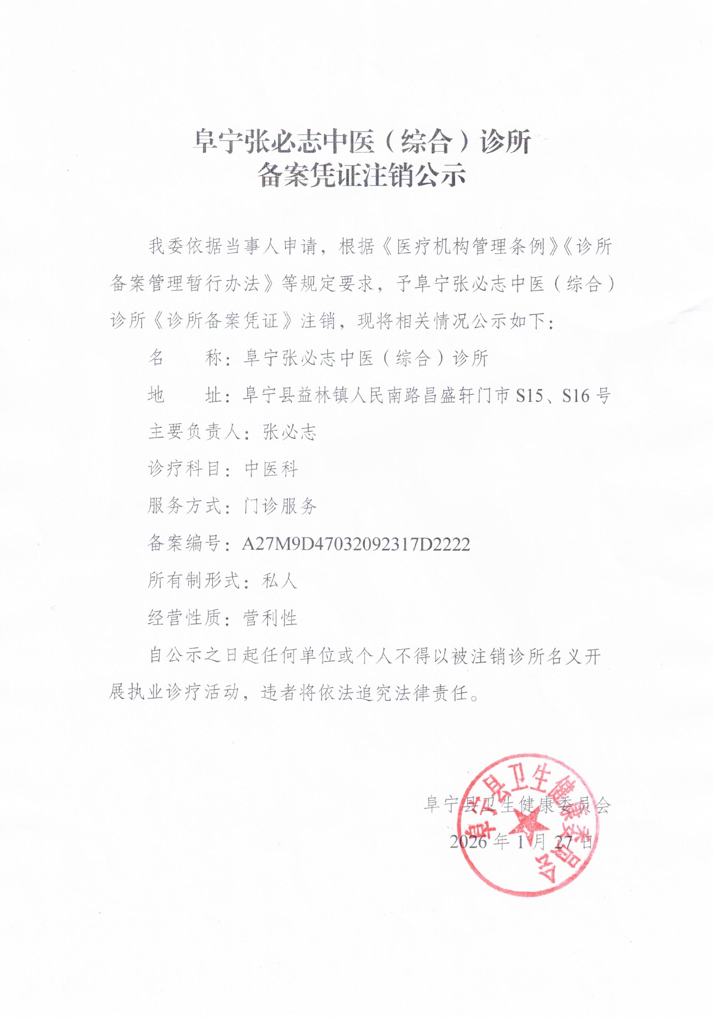 阜宁张必志中医(综合)诊所