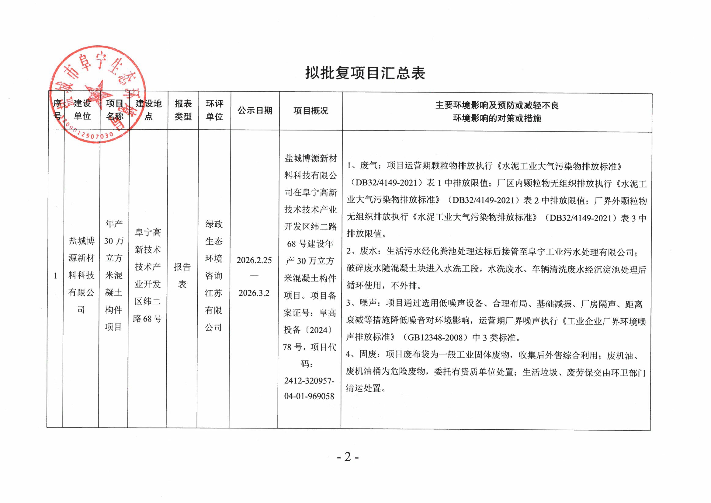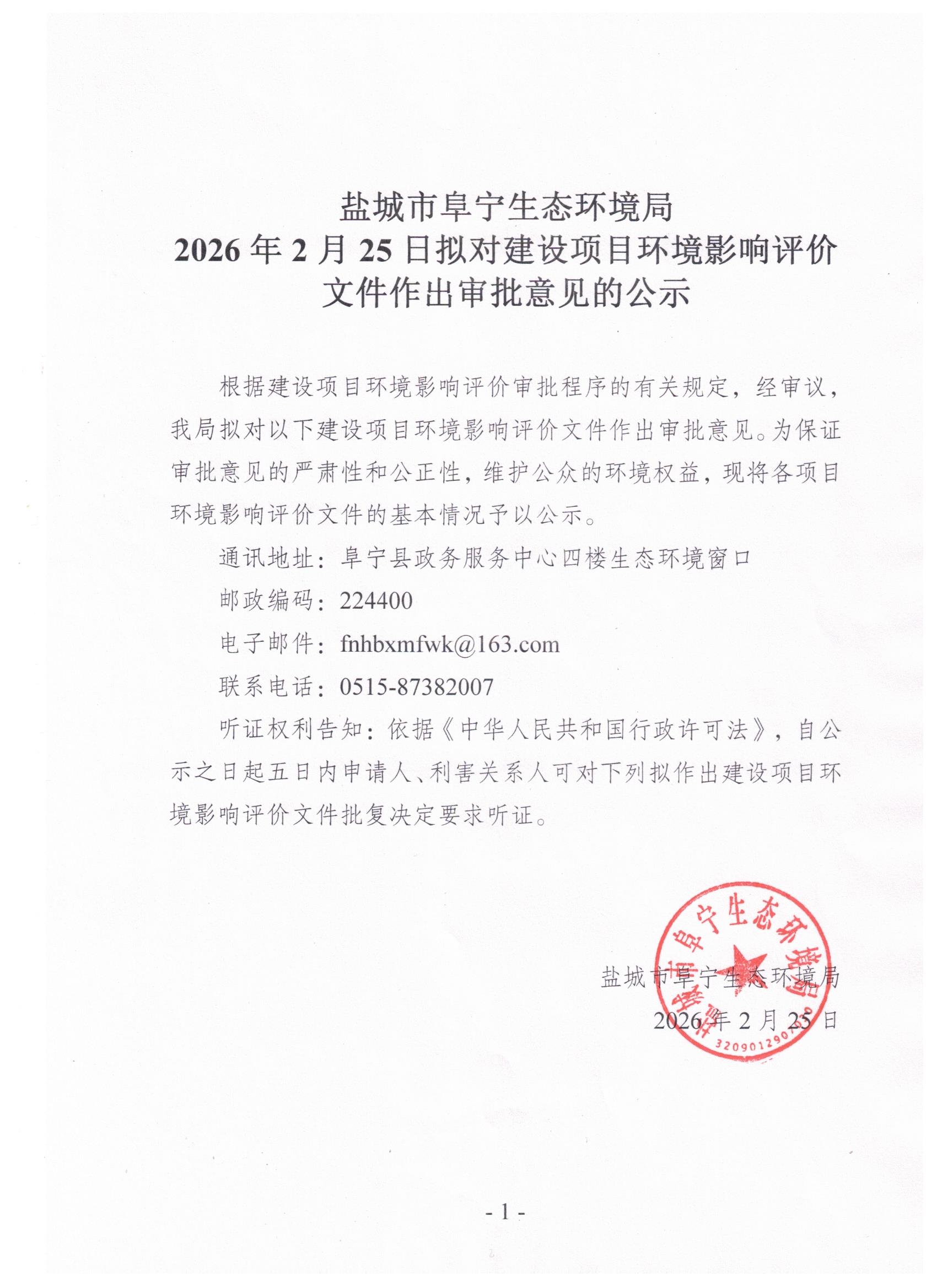 2026年2月25日拟对建设项目环境影响评价