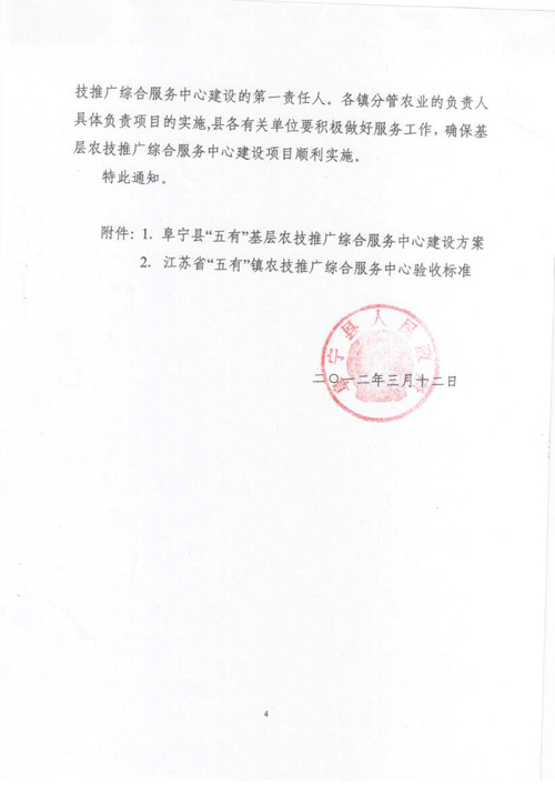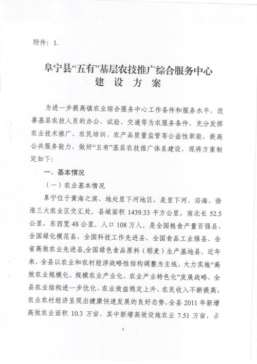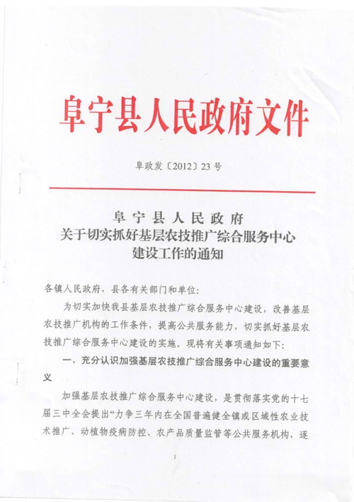 阜宁县人民政府关于切实抓好基层农技推广综合服务中心建设工作的通知