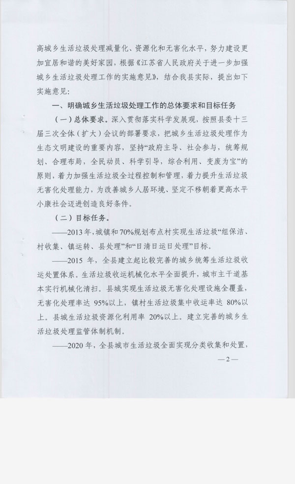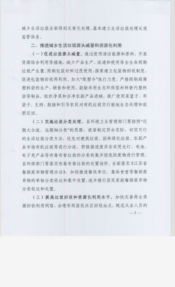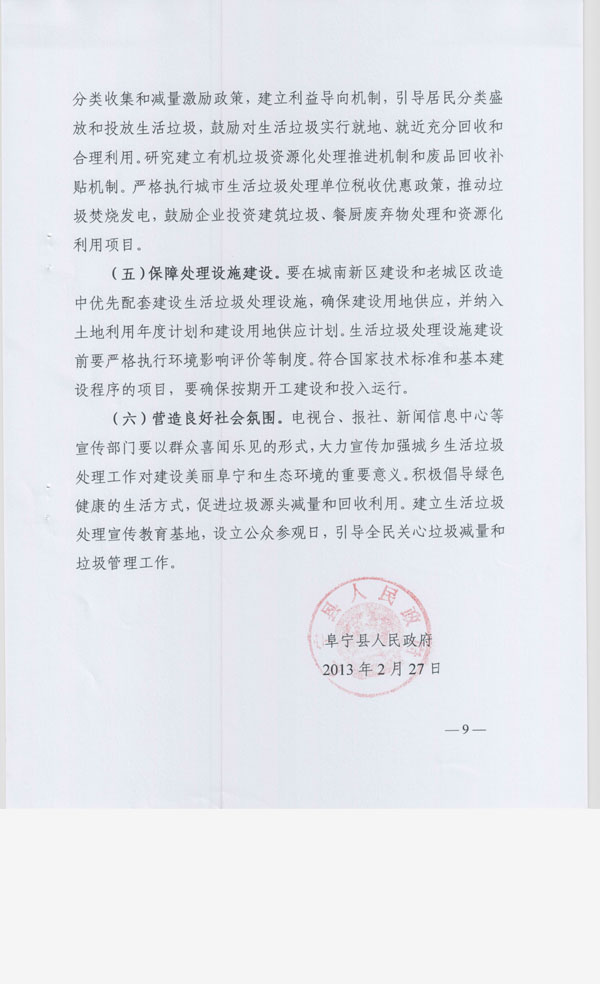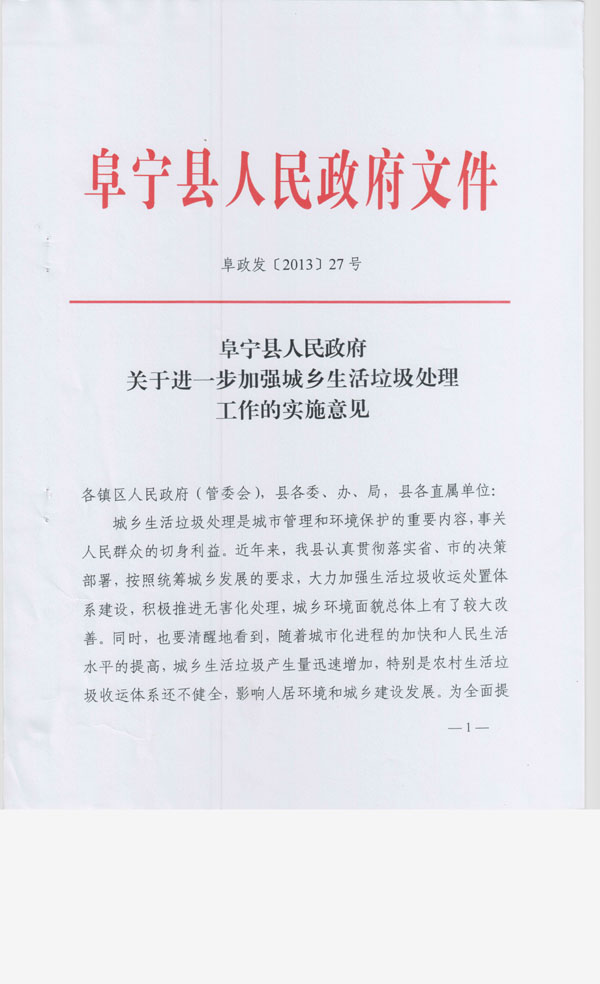 阜宁县人民政府关于进一步加强城乡生活垃圾处理工作的实施意见
