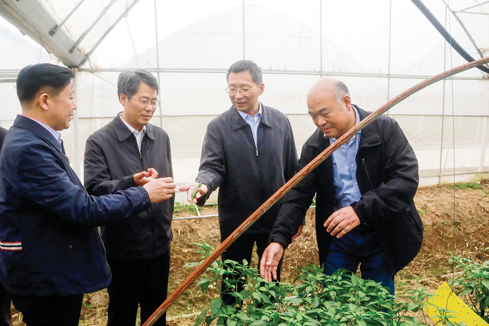 戴源(左三)在新沟镇大楼村示范农业基地实地调研