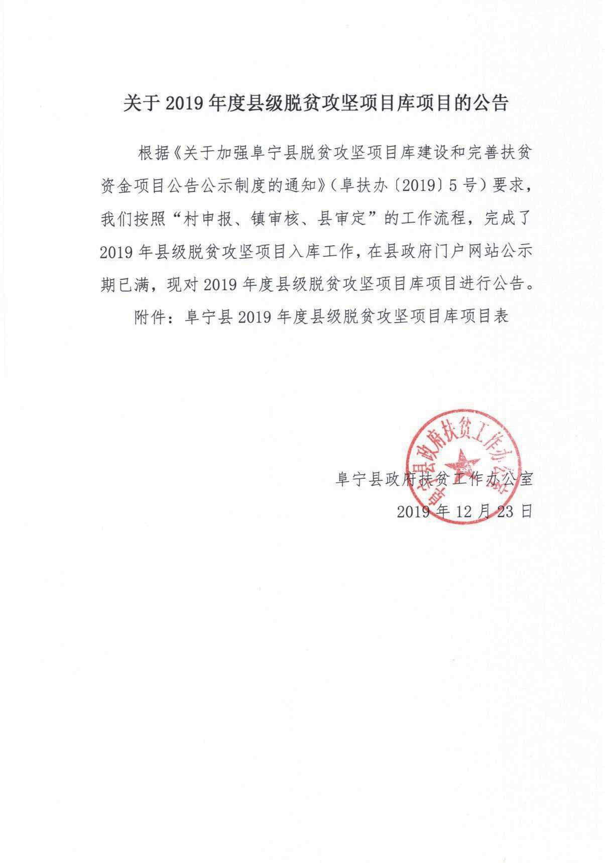 阜宁县2019年度县级脱贫攻坚项目库项目表