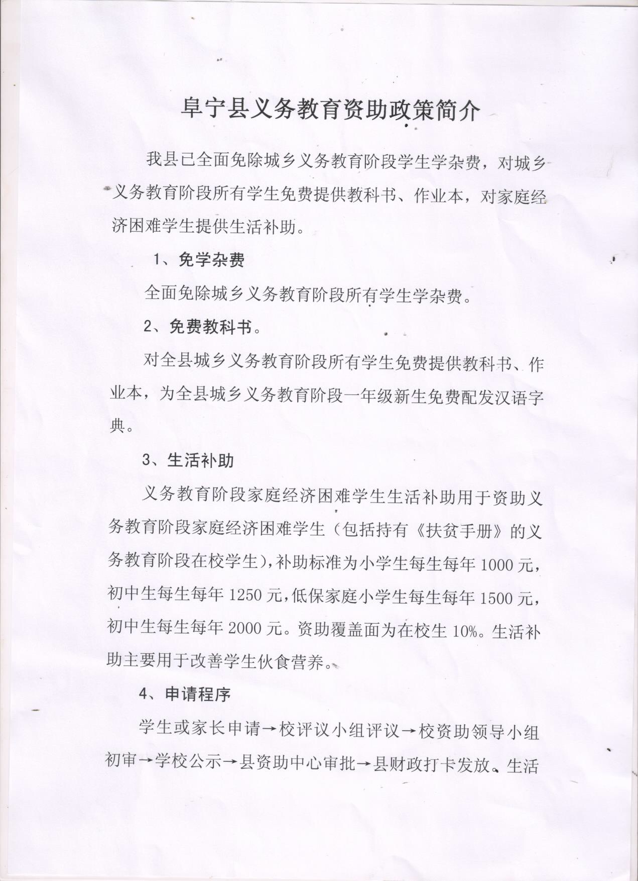阜宁县义务教育资助政策简介