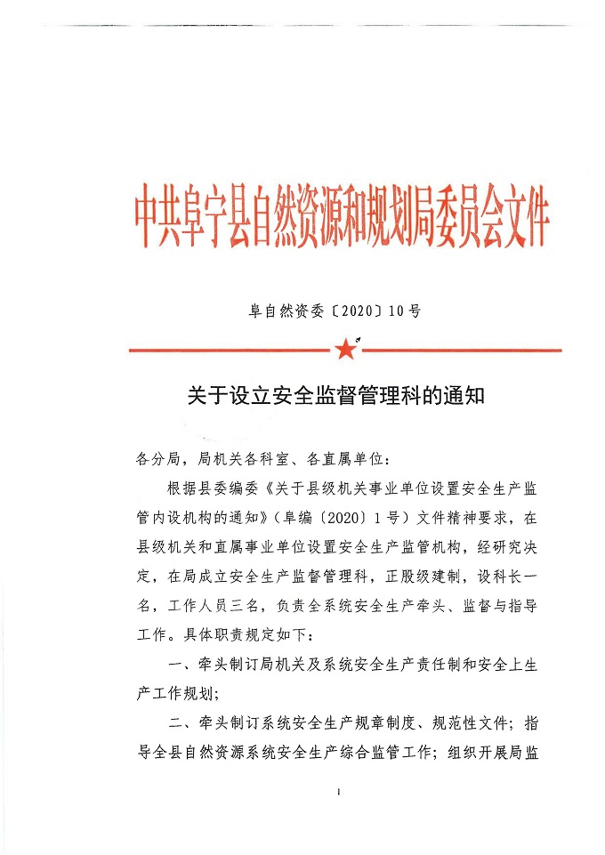 关于设立安全监督管理科的通知
