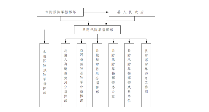 县防御水旱灾害工作指挥机构为阜宁县防汛防旱指挥部(以下简称“县防指”)。县防指由指挥、副指挥及成员单位组成。县防指由县长任指挥,县委县政府分管领导、人武部部长、公安局局长、应急管理局局长、水务局局长等任副指挥。