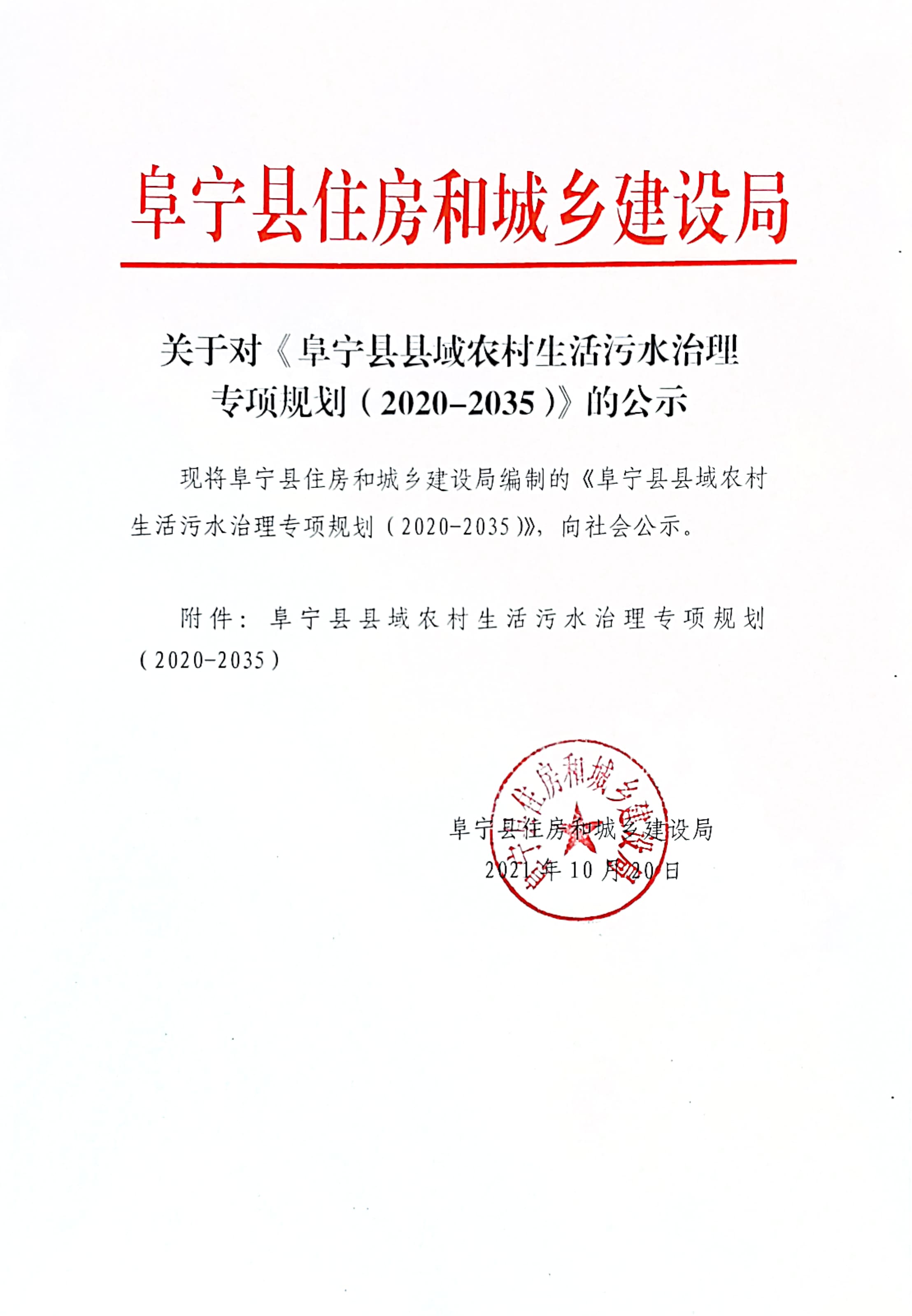 关于对《阜宁县县域农村生活污水治理专项规划(2020-2035)》的公示