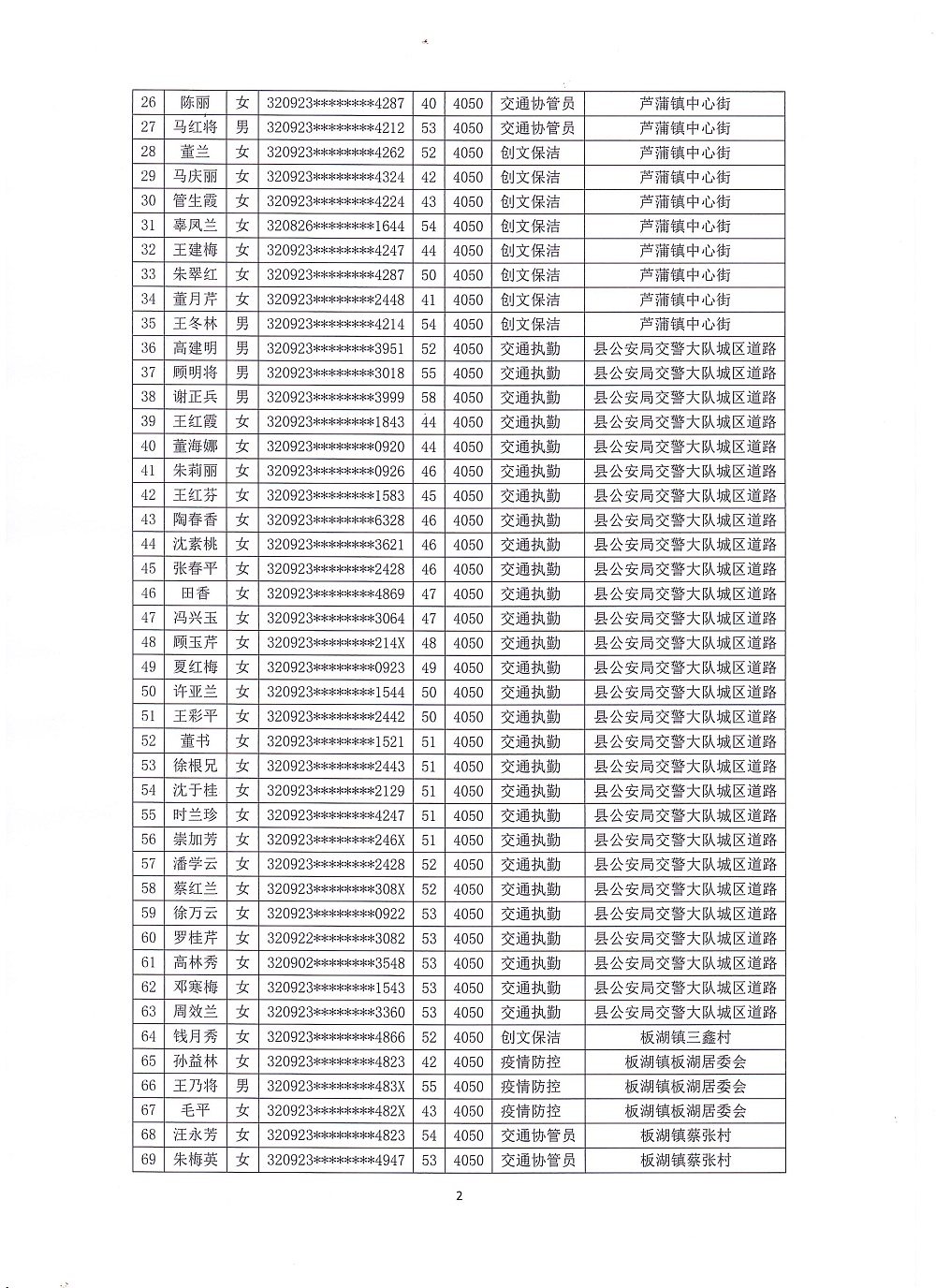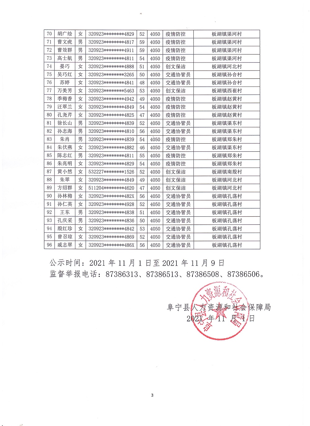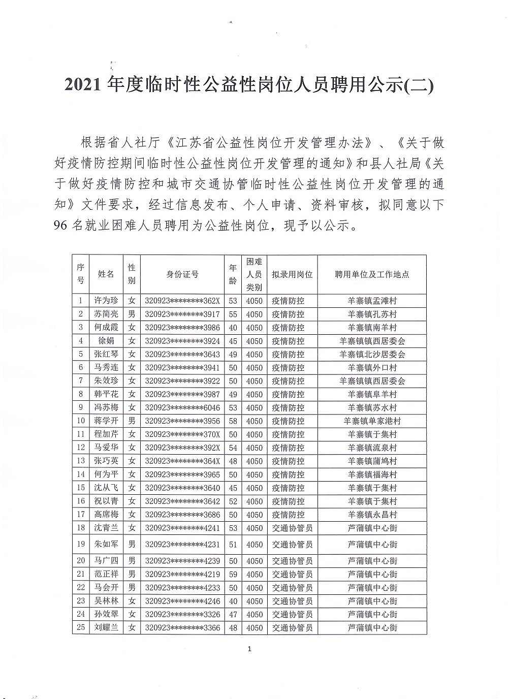 2021年度临时性公益性岗位人员聘用公示(二)