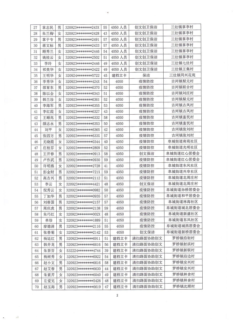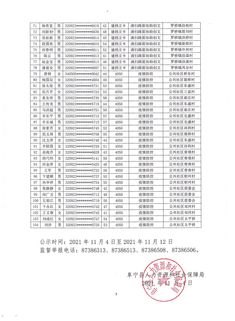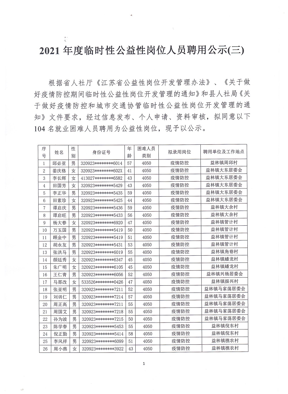 2021年度临时性公益性岗位人员聘用公示(三)