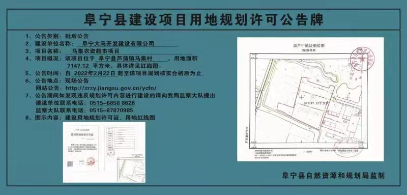 阜宁大马开发建设有限公司马集农资超市项目建设用地规划许可批后公告