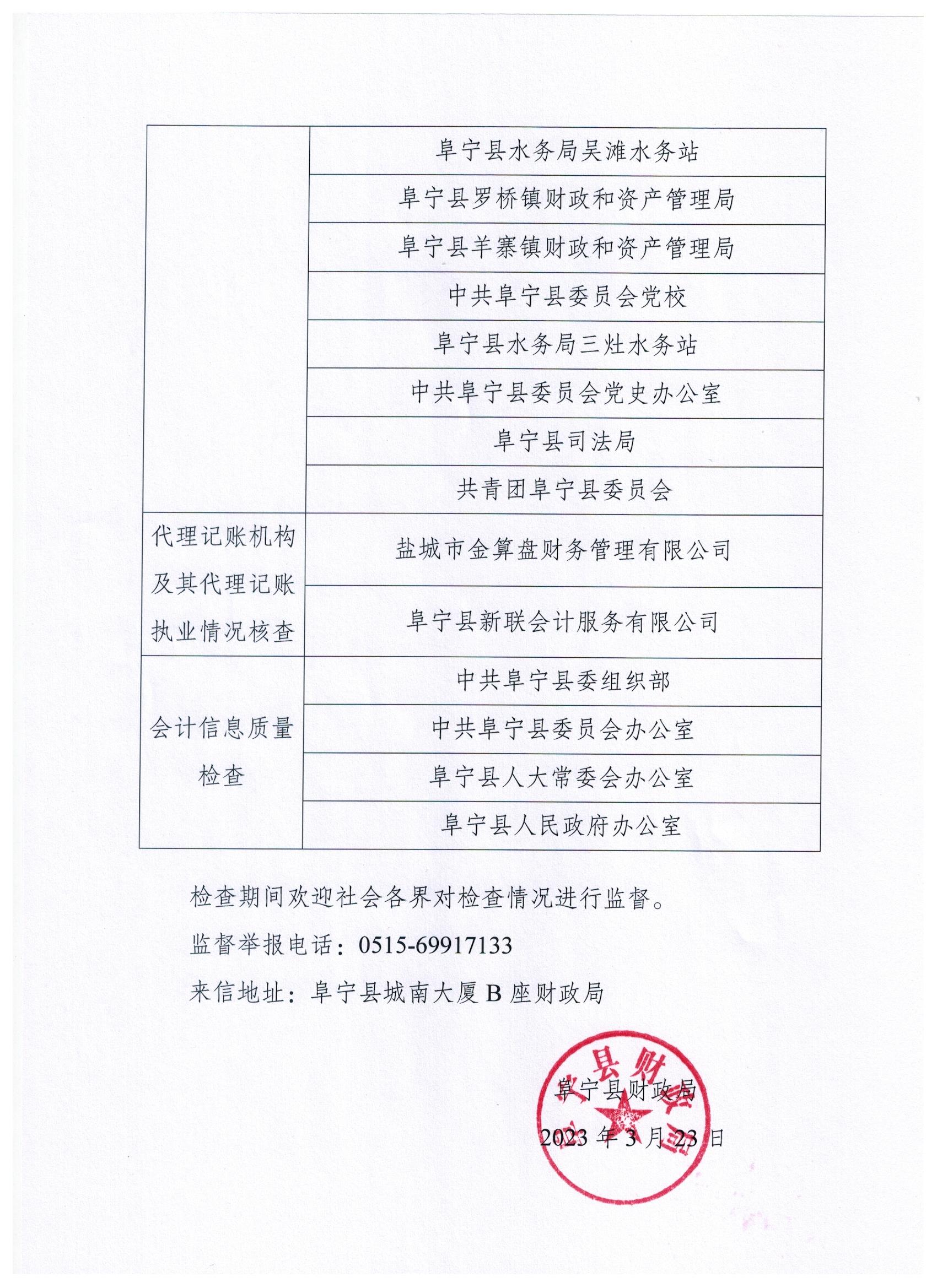阜宁县财政局2023年度财政监督检查公示