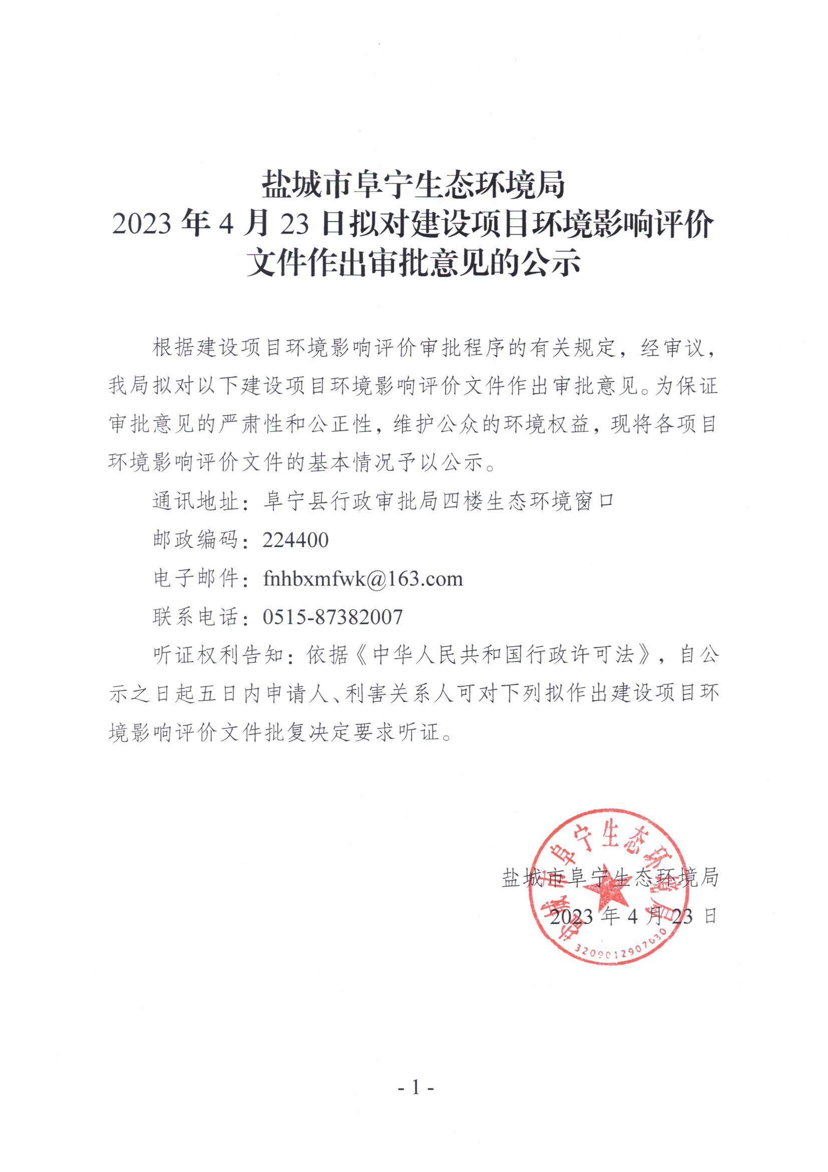 2023年4月23日拟对建设项目环境影响评价