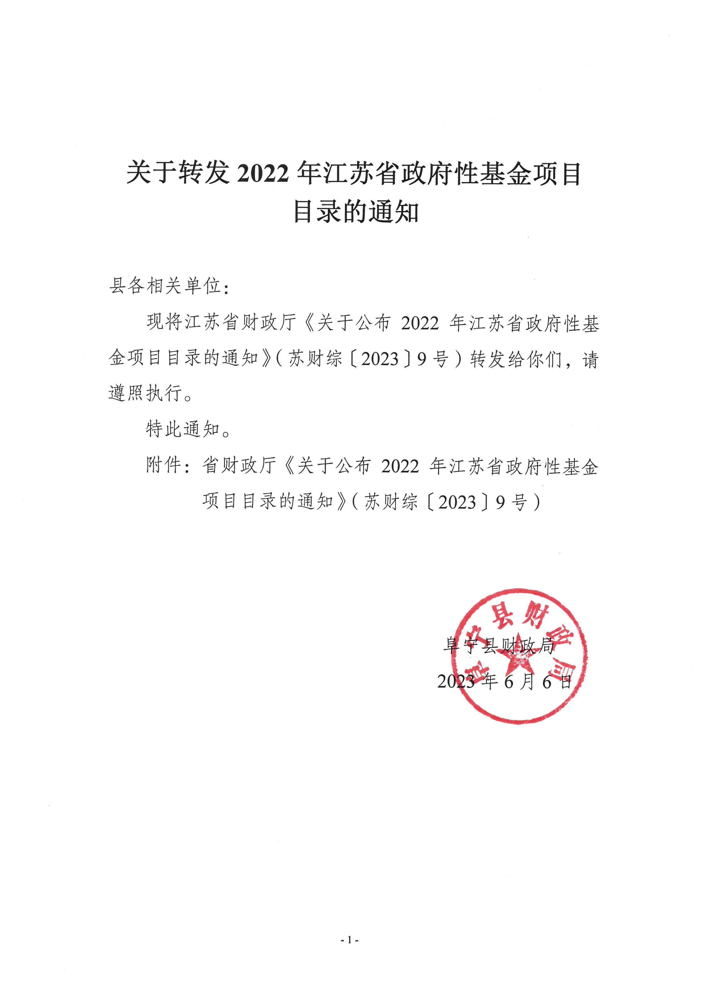 关于转发2022年江苏省政府性基金项目目录的通知