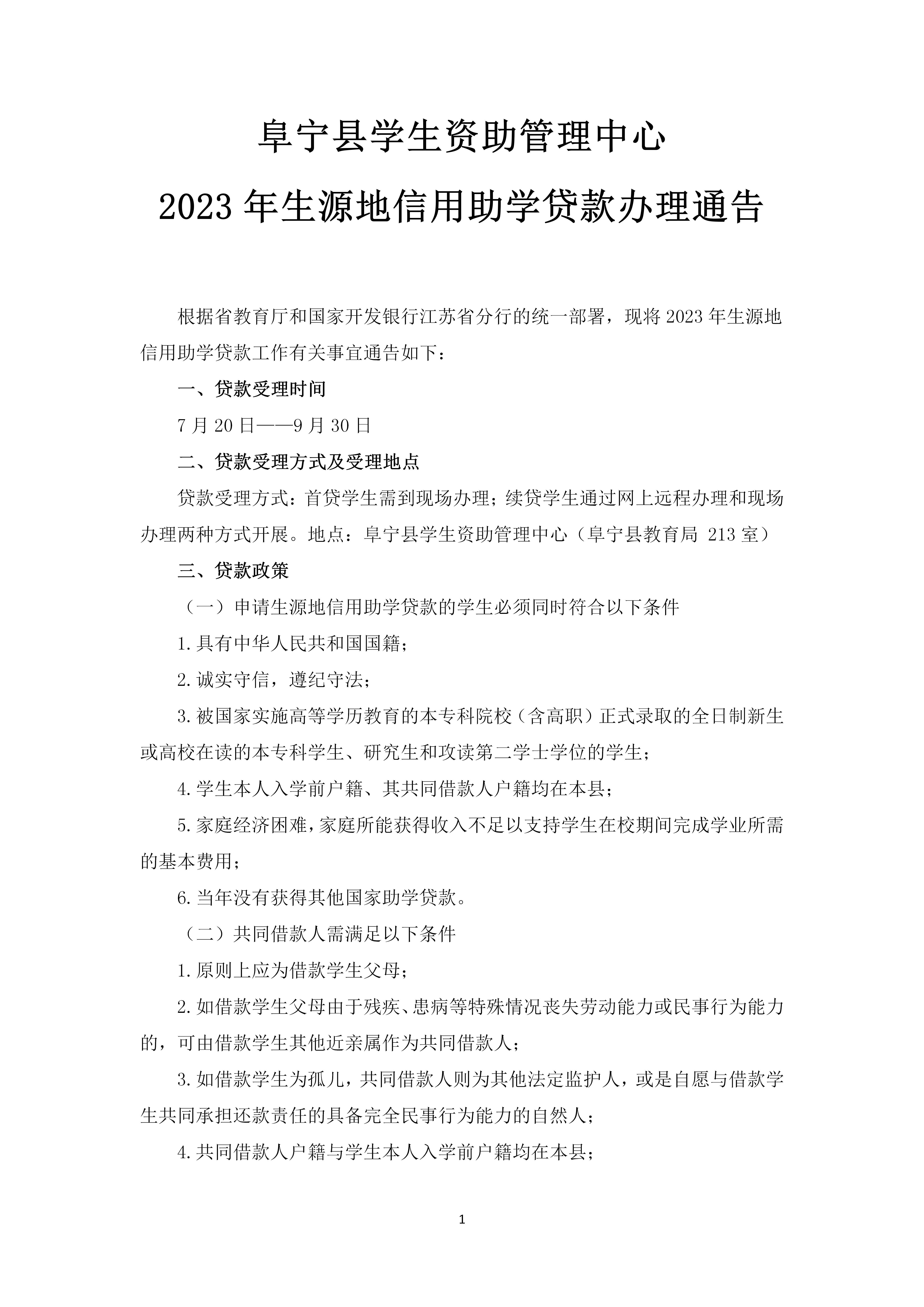 阜宁县学生资助管理中心2023年生源地信用助学贷款办理通告