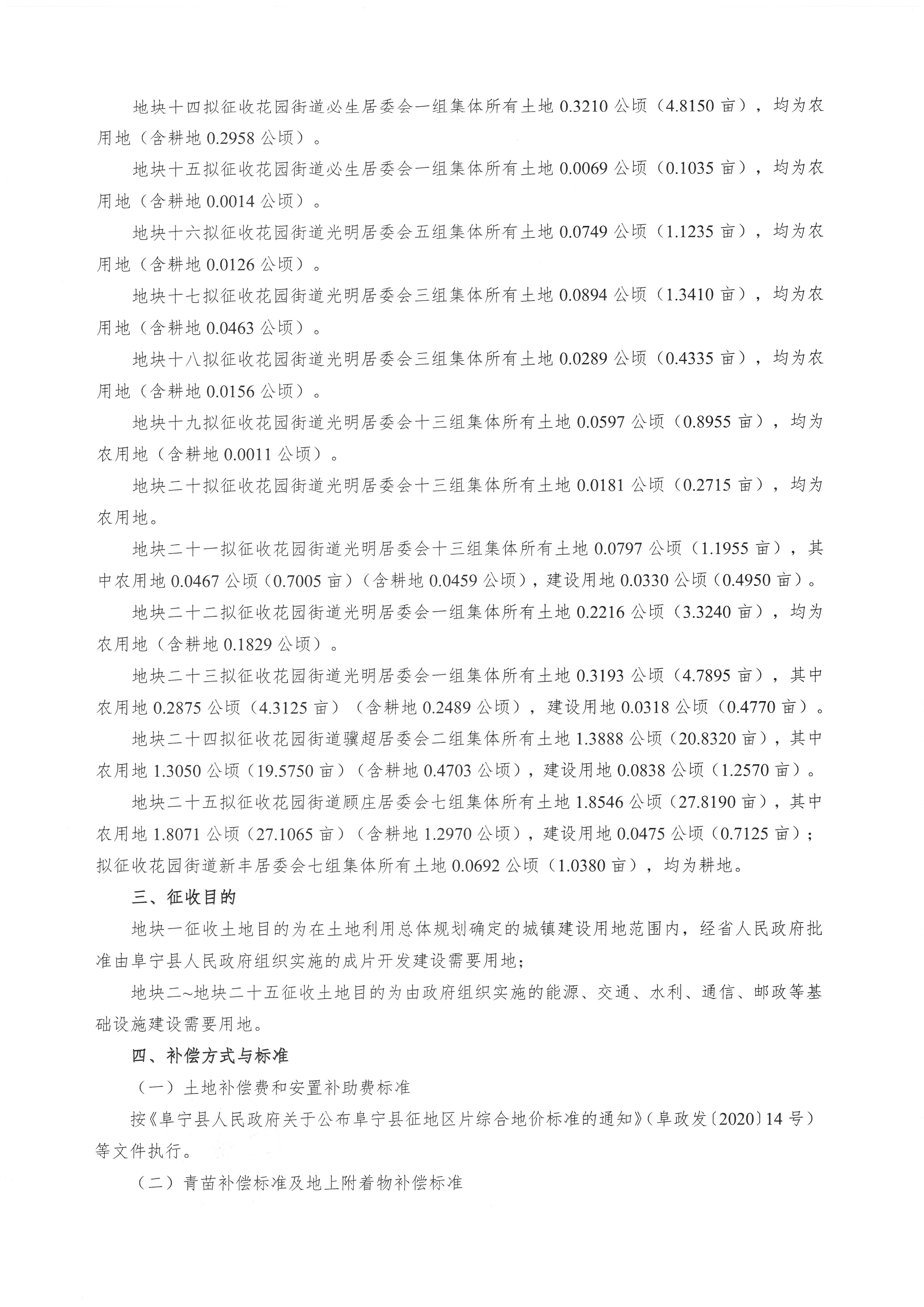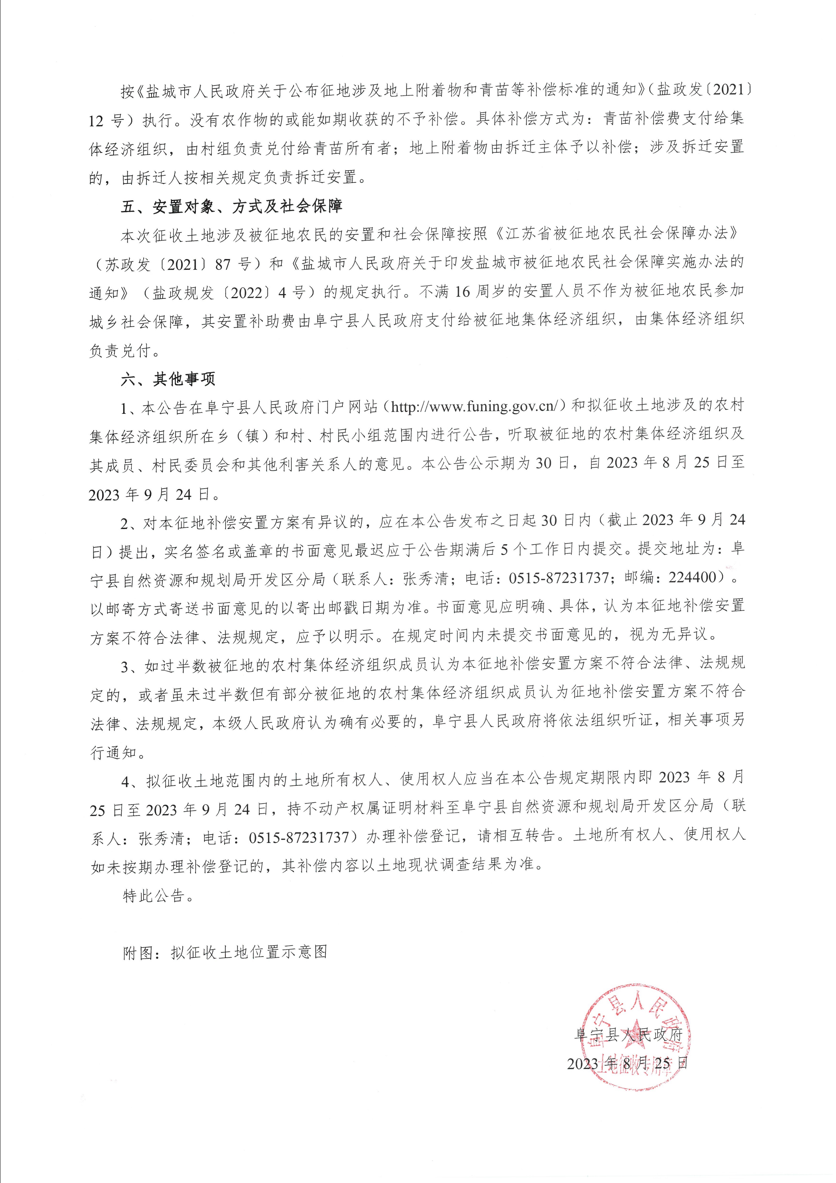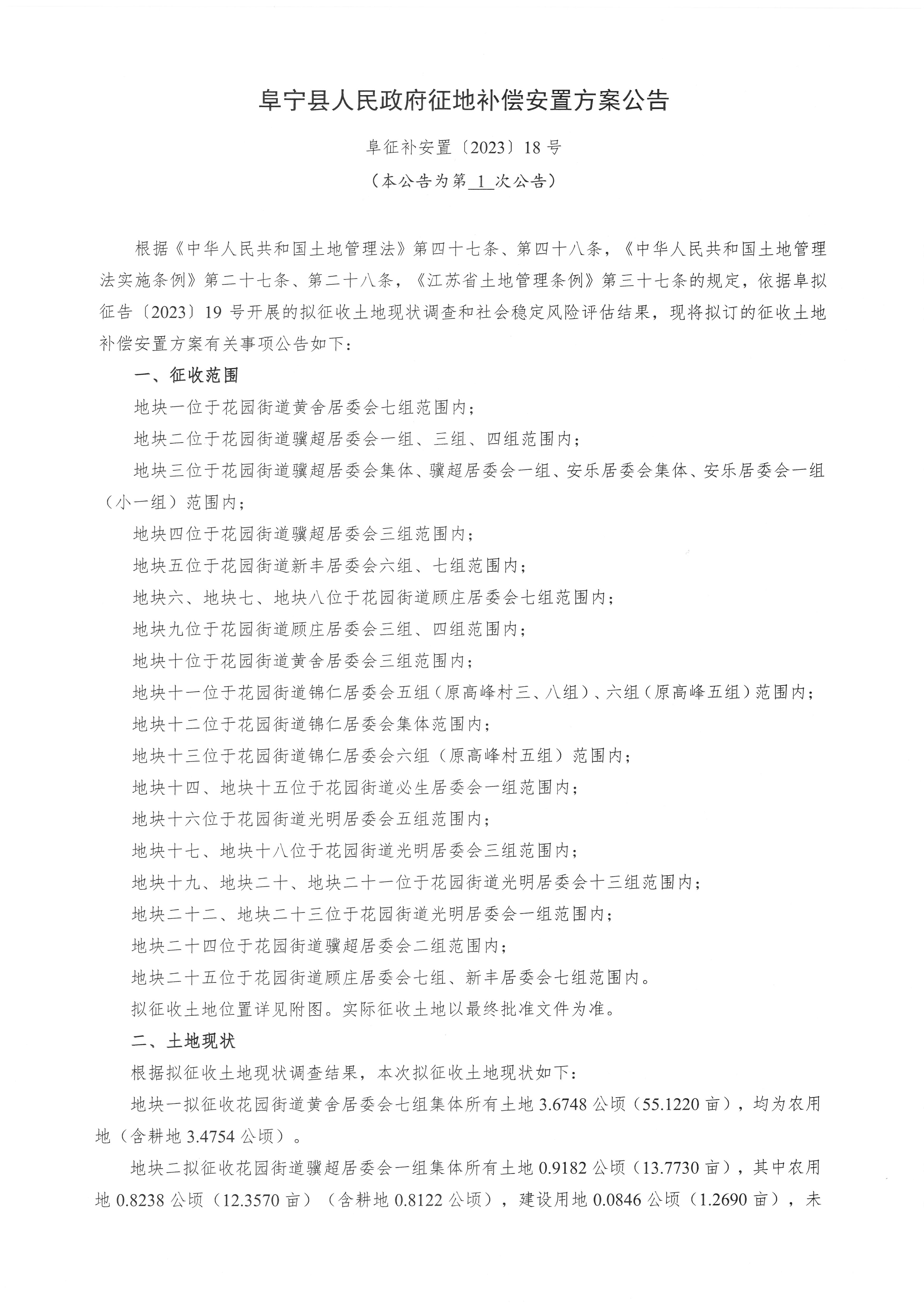 阜宁县人民政府征地补偿安置方案公告