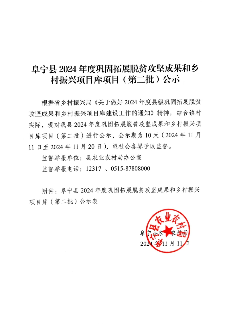阜宁县2024年度巩固拓展脱贫攻坚成果和乡村振兴项目库项目(第二批)公示