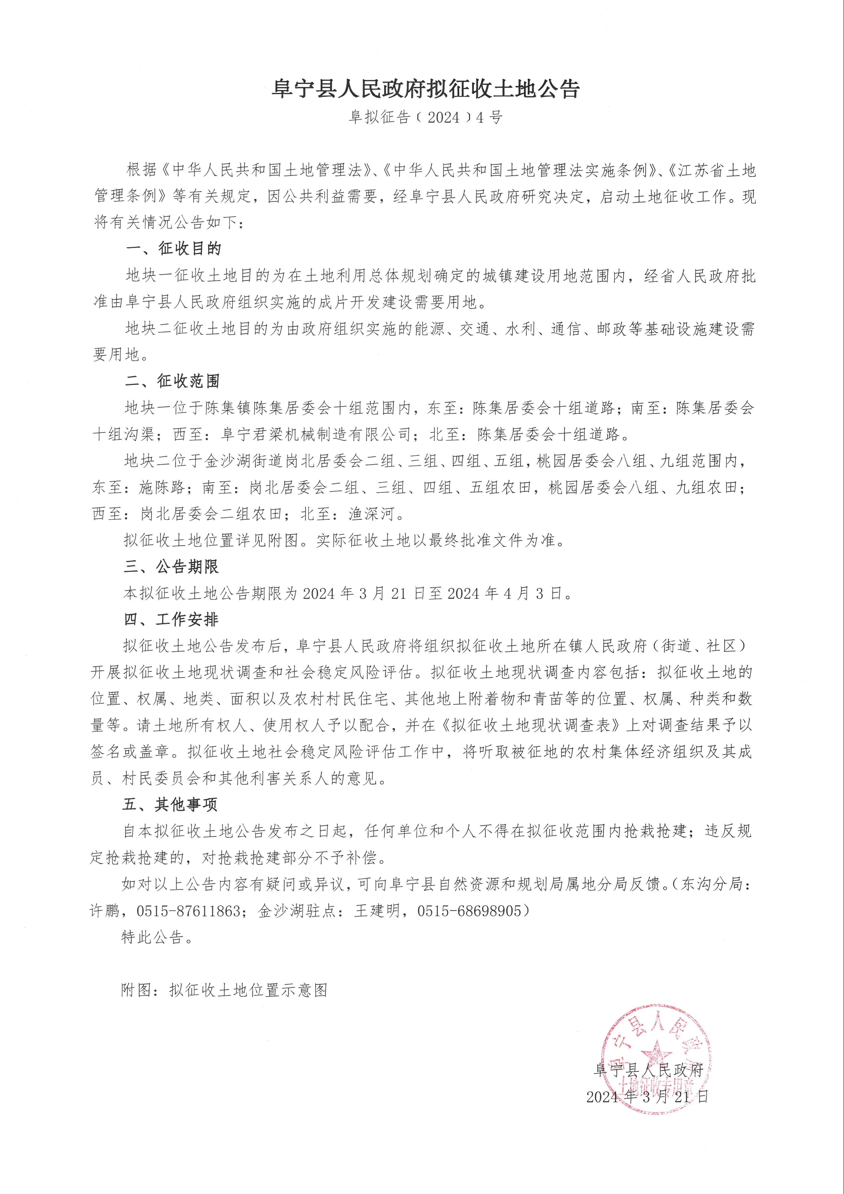 阜宁县人民政府拟征收土地公告