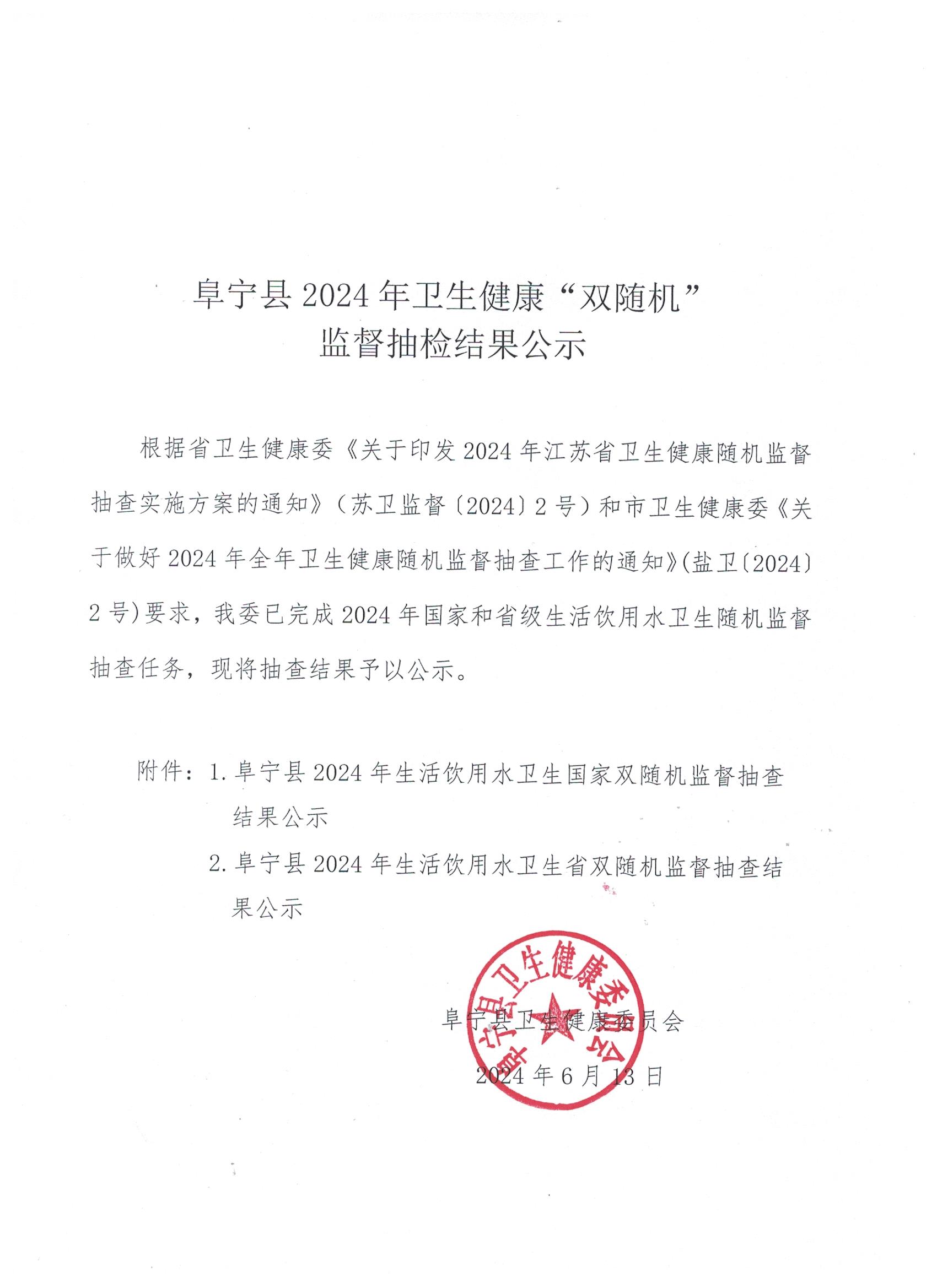 阜宁县2024年卫生健康“双随机”监督抽检结果公示