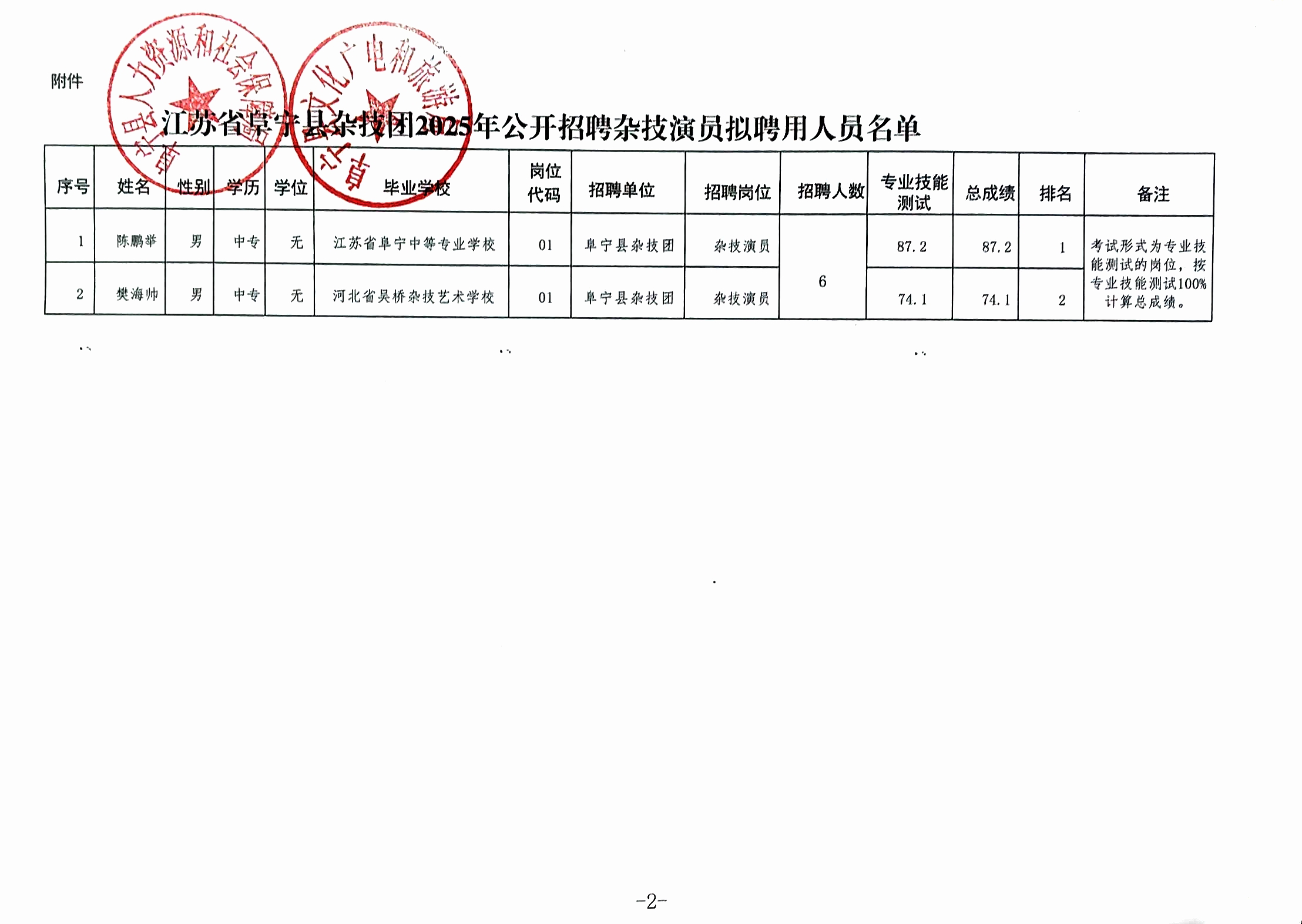 附件:江苏省阜宁县杂技团2025年公开招聘杂技演员拟聘用人员名单