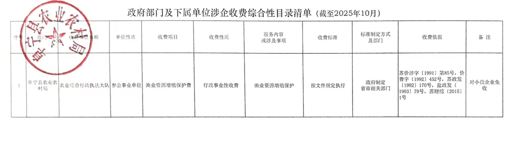 政府部门及下属单位涉企收费综合性目录清单(县农业农村局)
