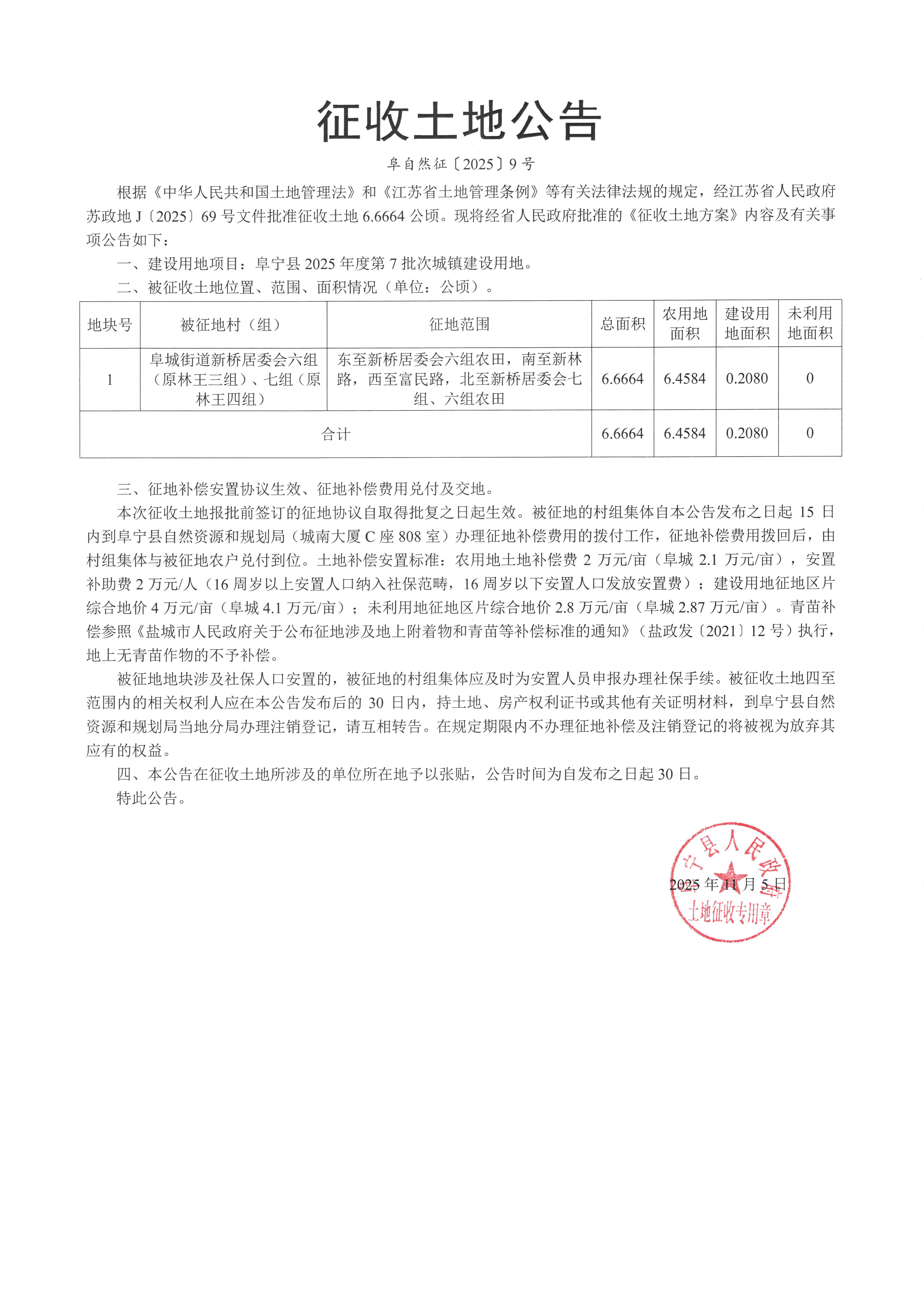 征收土地公告(阜自然征〔2025〕9号)