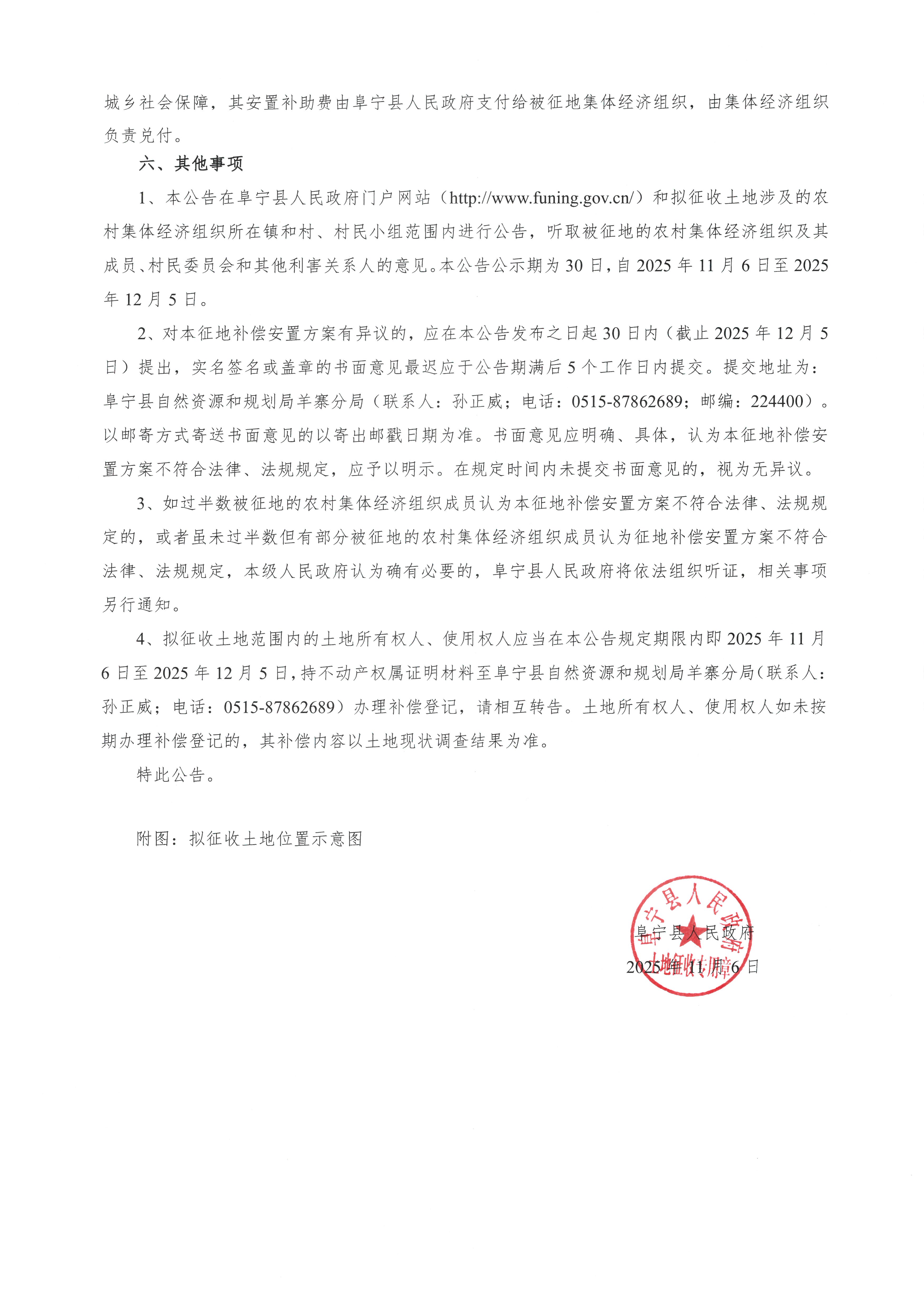 阜宁县人民政府征地补偿安置方案公告(阜征补安置〔2025〕21号)