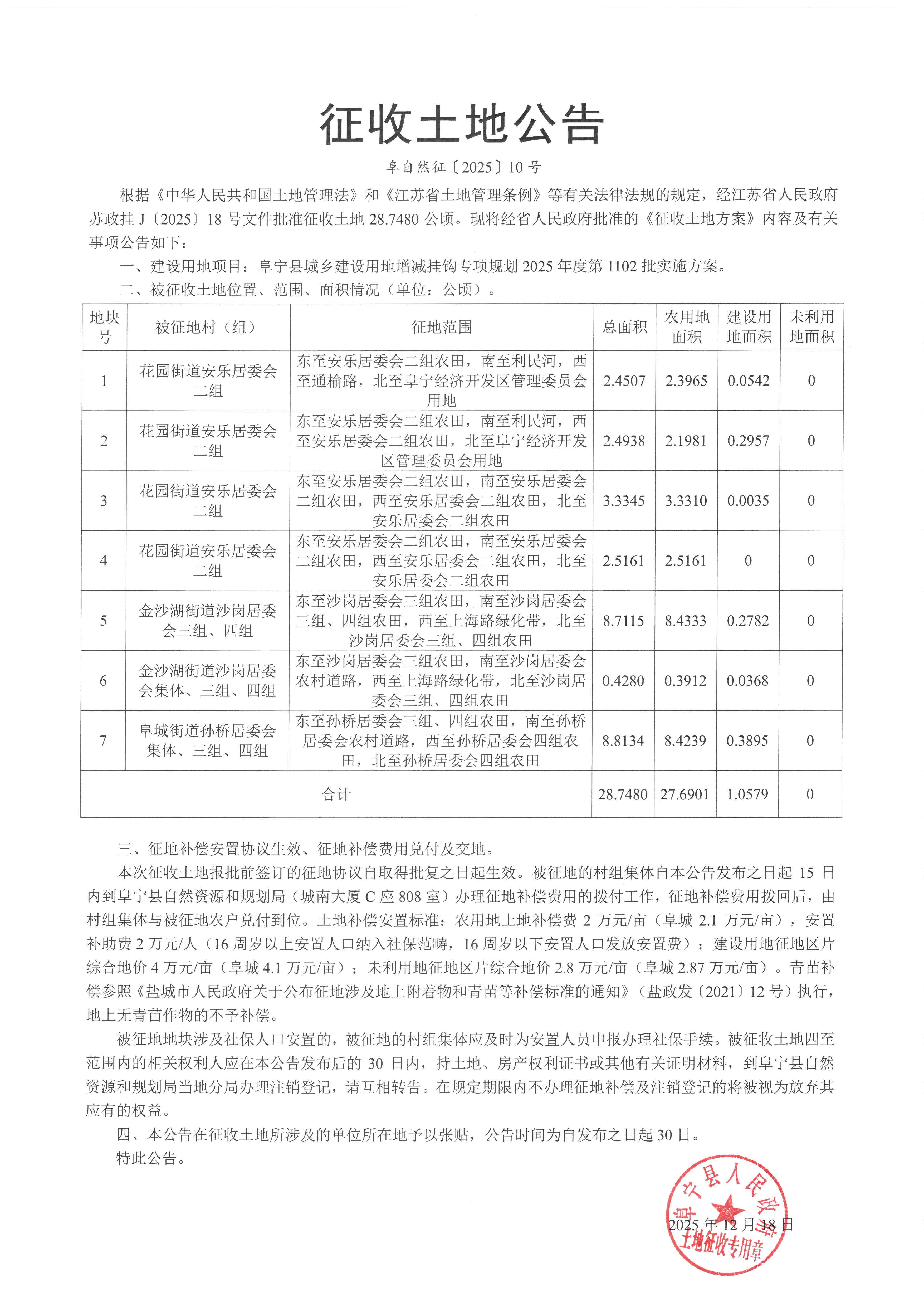 征收土地公告(阜自然征〔2025〕10号)