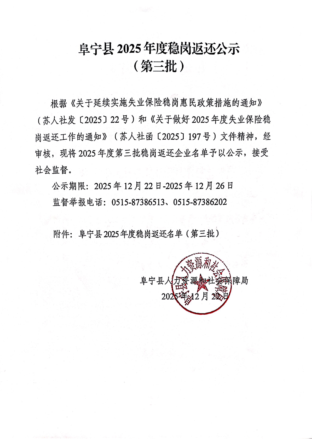 阜宁县2025年度稳岗返还名单(第三批).xls