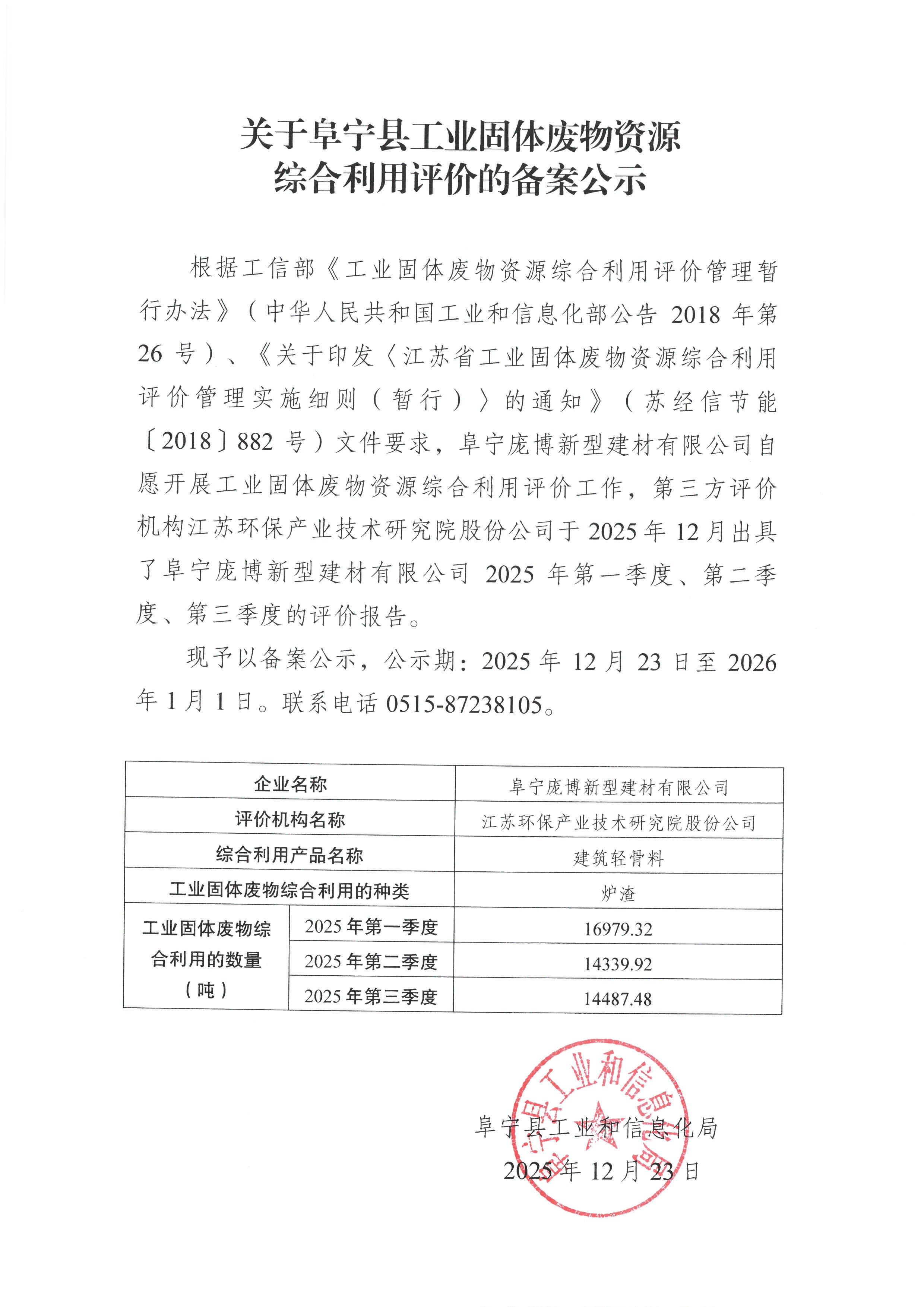 关于阜宁县工业固体废物资源综合利用评价的备案公示