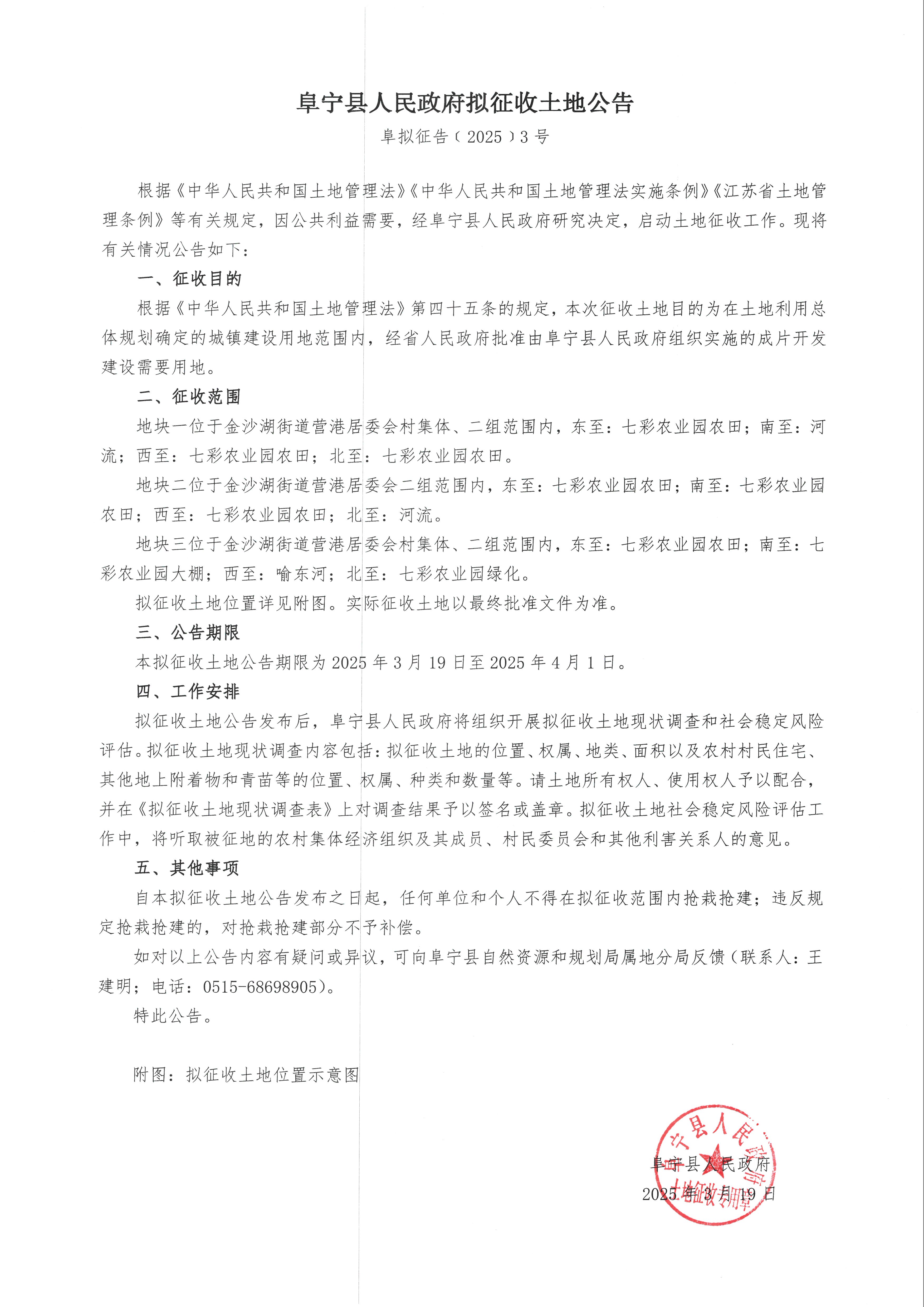 阜宁县人民政府拟征收土地公告(阜拟征告〔2025〕3号)