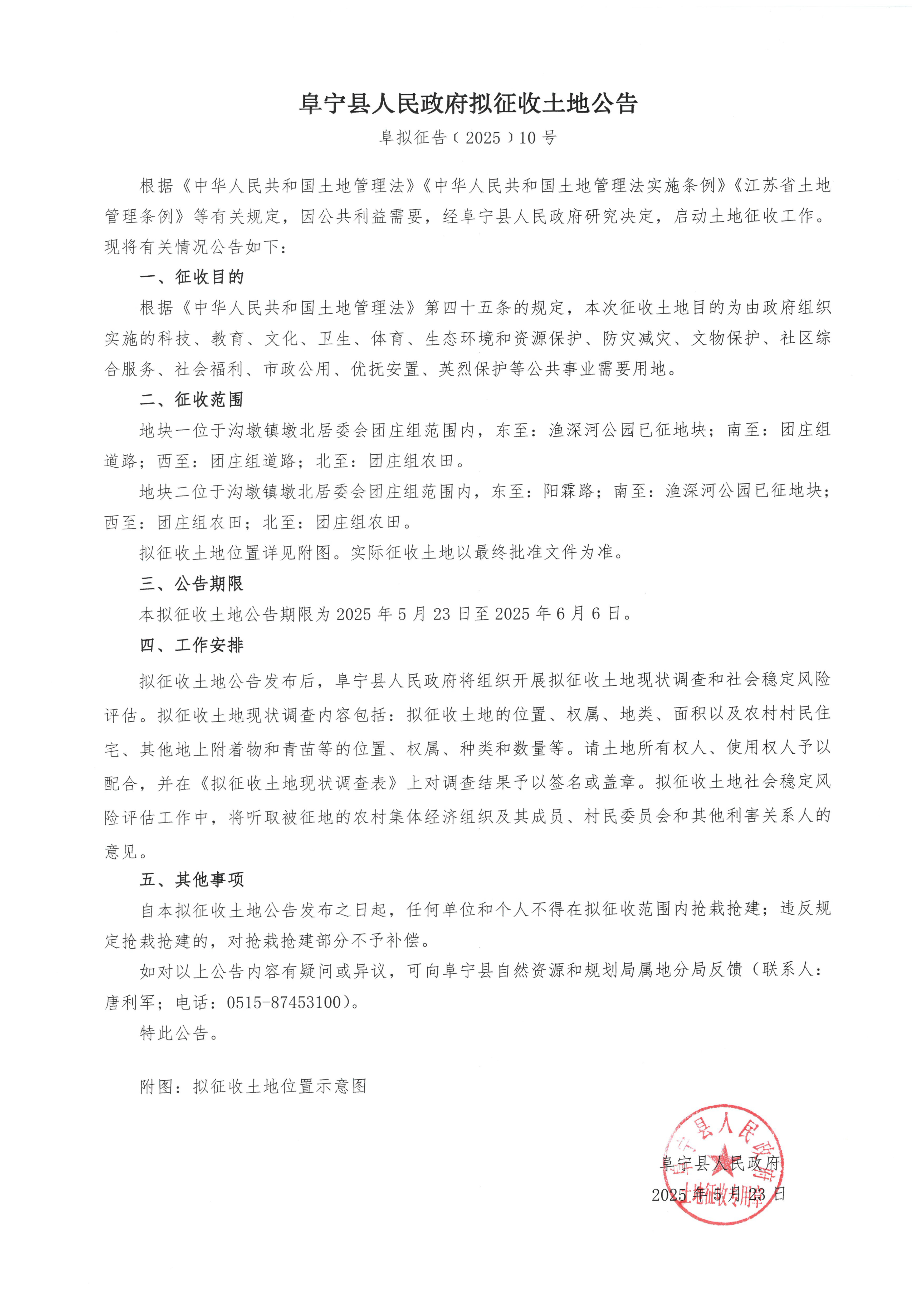 阜宁县人民政府拟征收土地公告(阜拟征告〔2025〕10号)