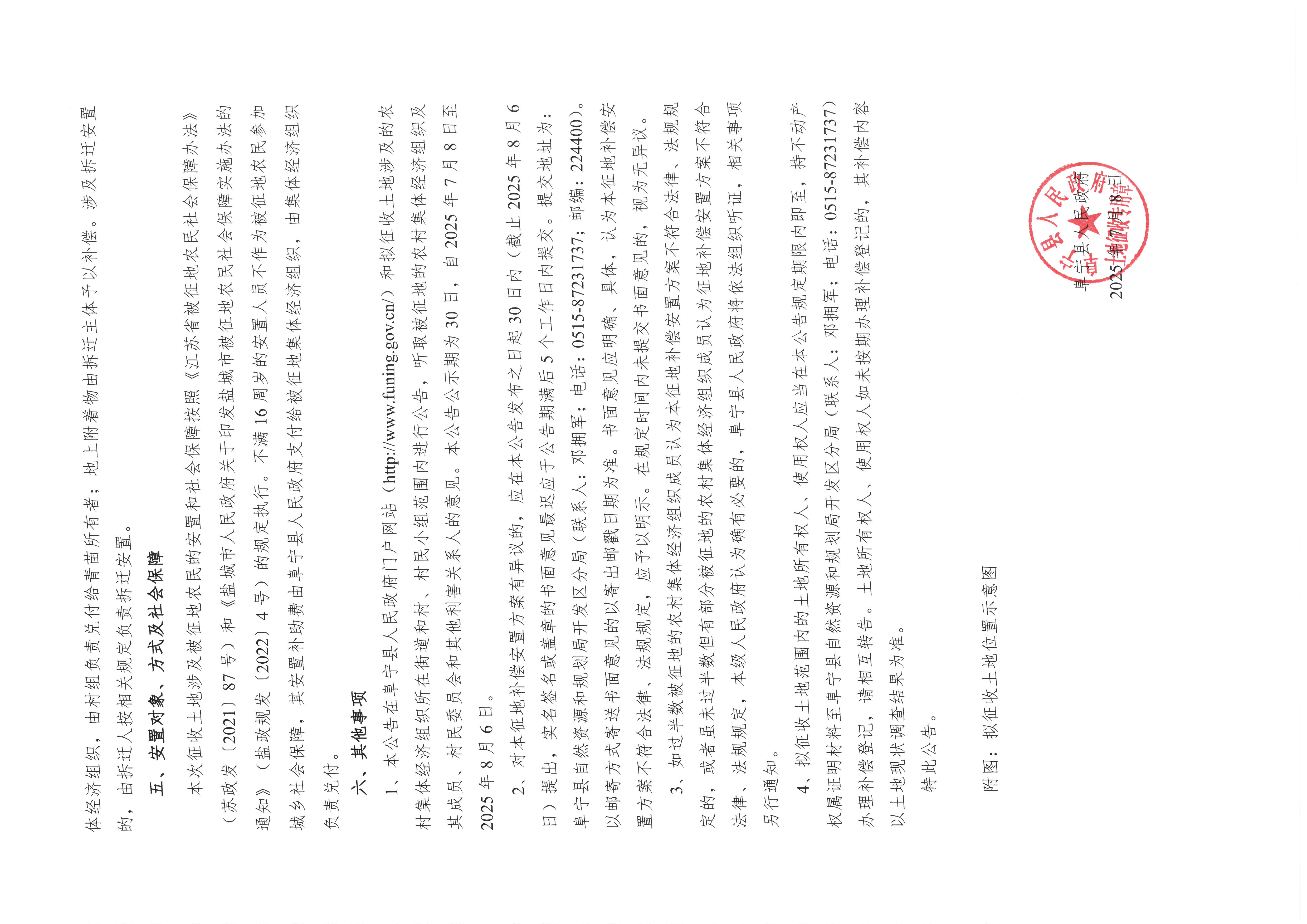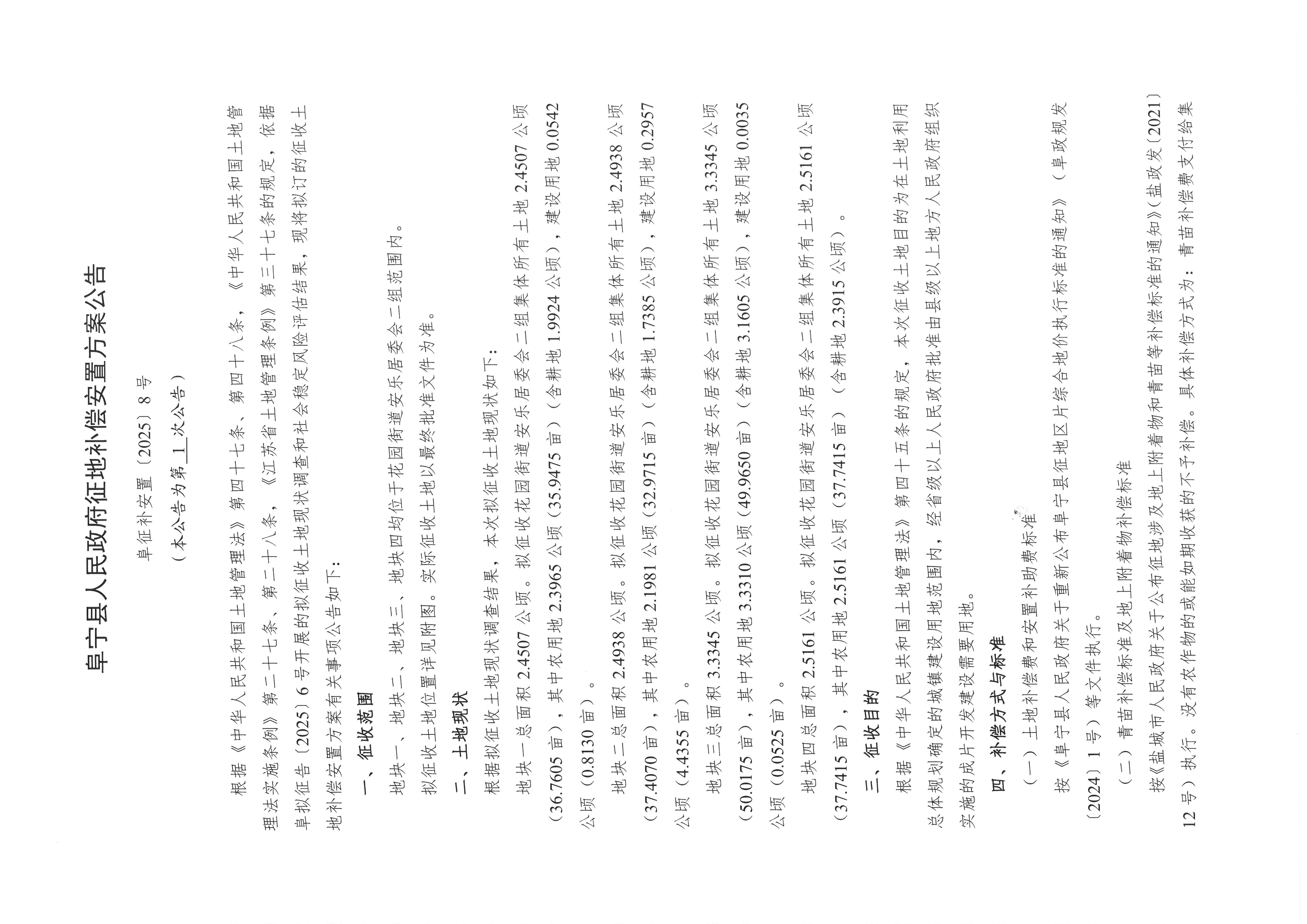 阜宁县人民政府征地补偿安置方案公告(阜征补安置〔2025〕8号)