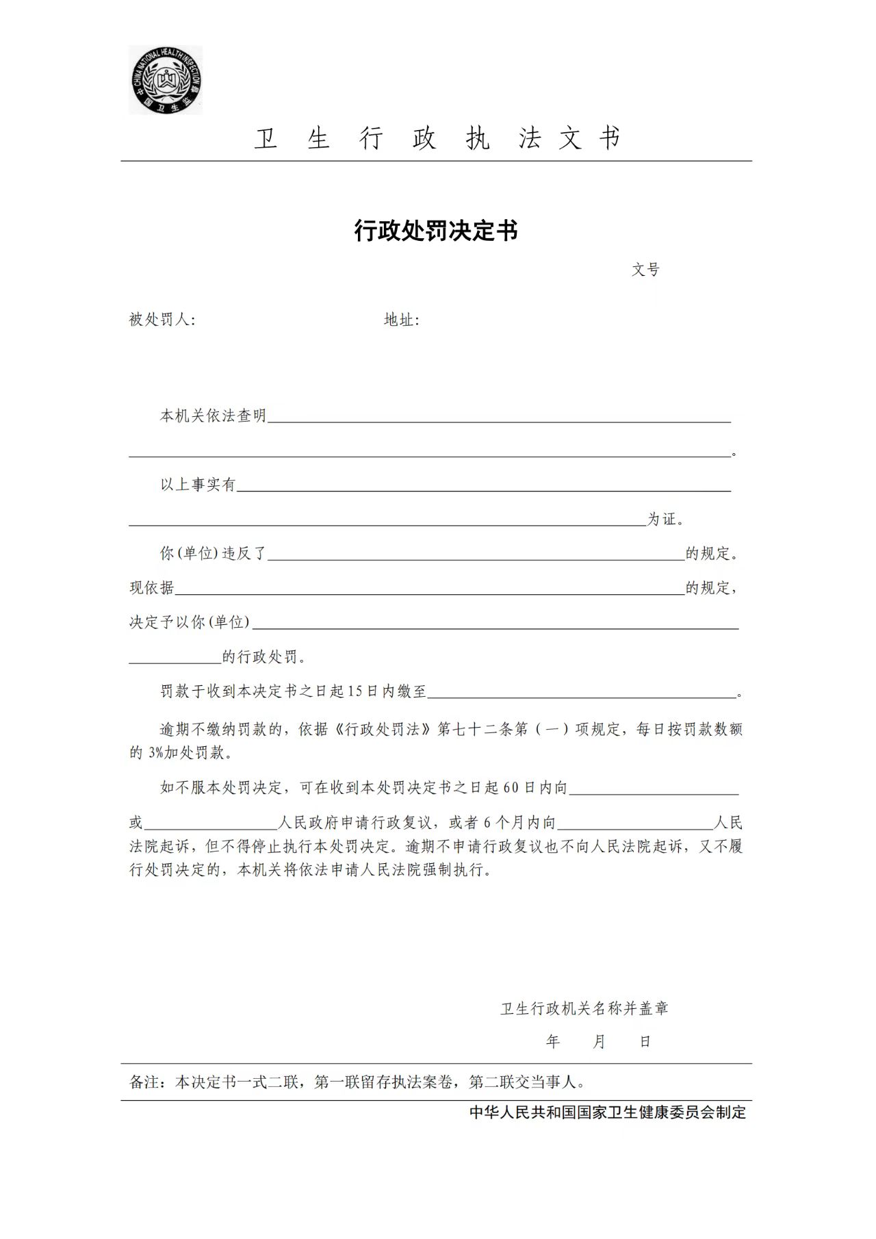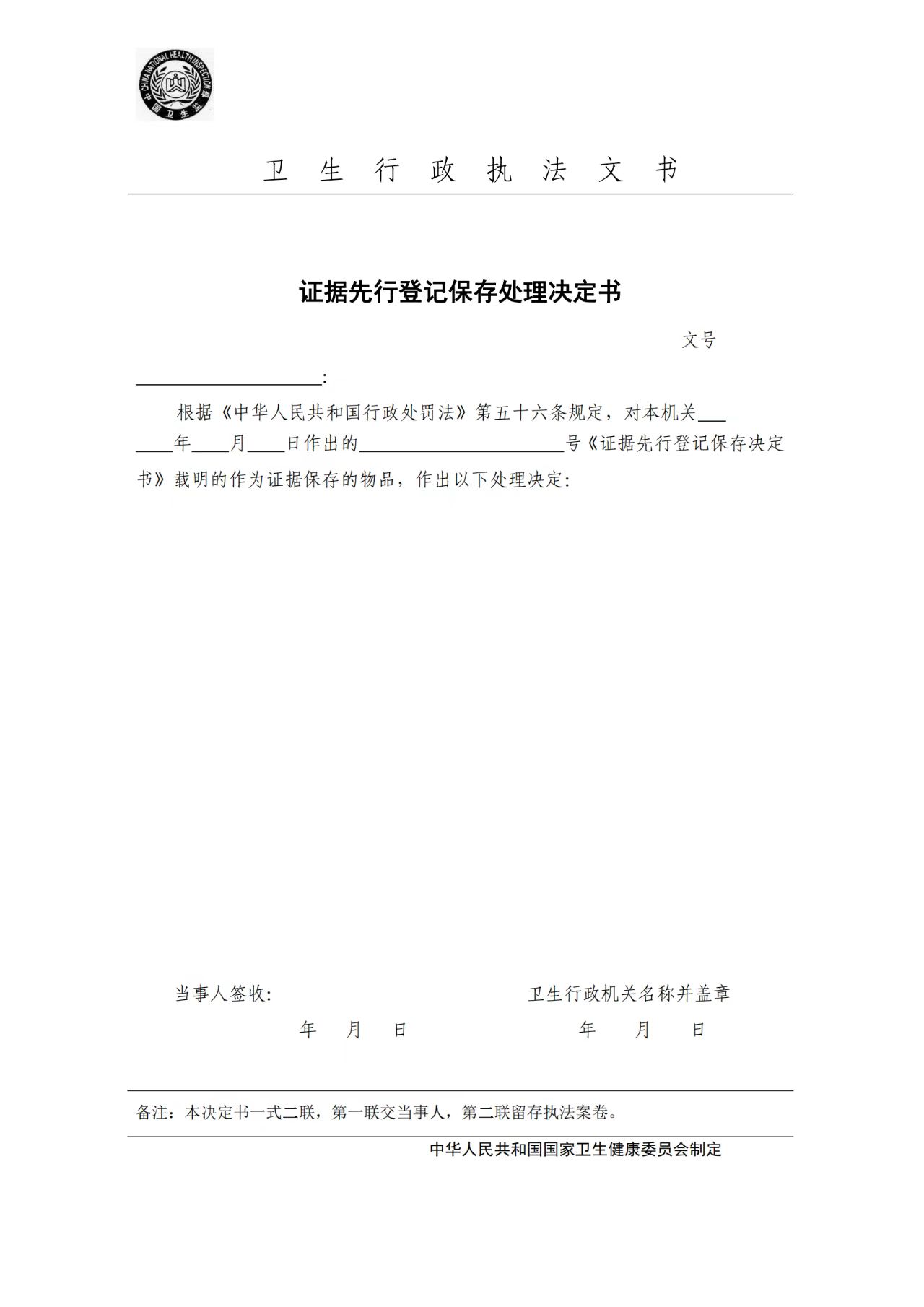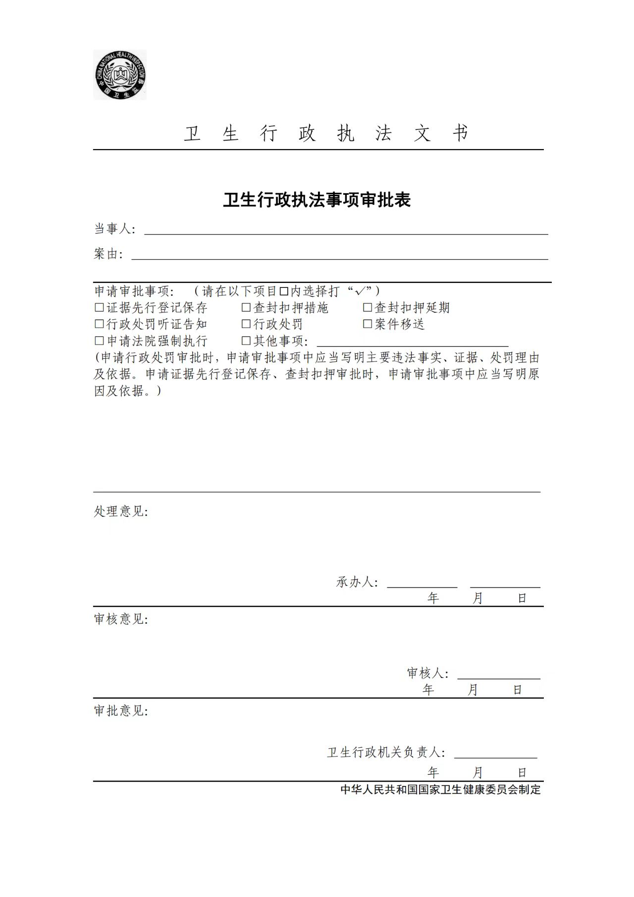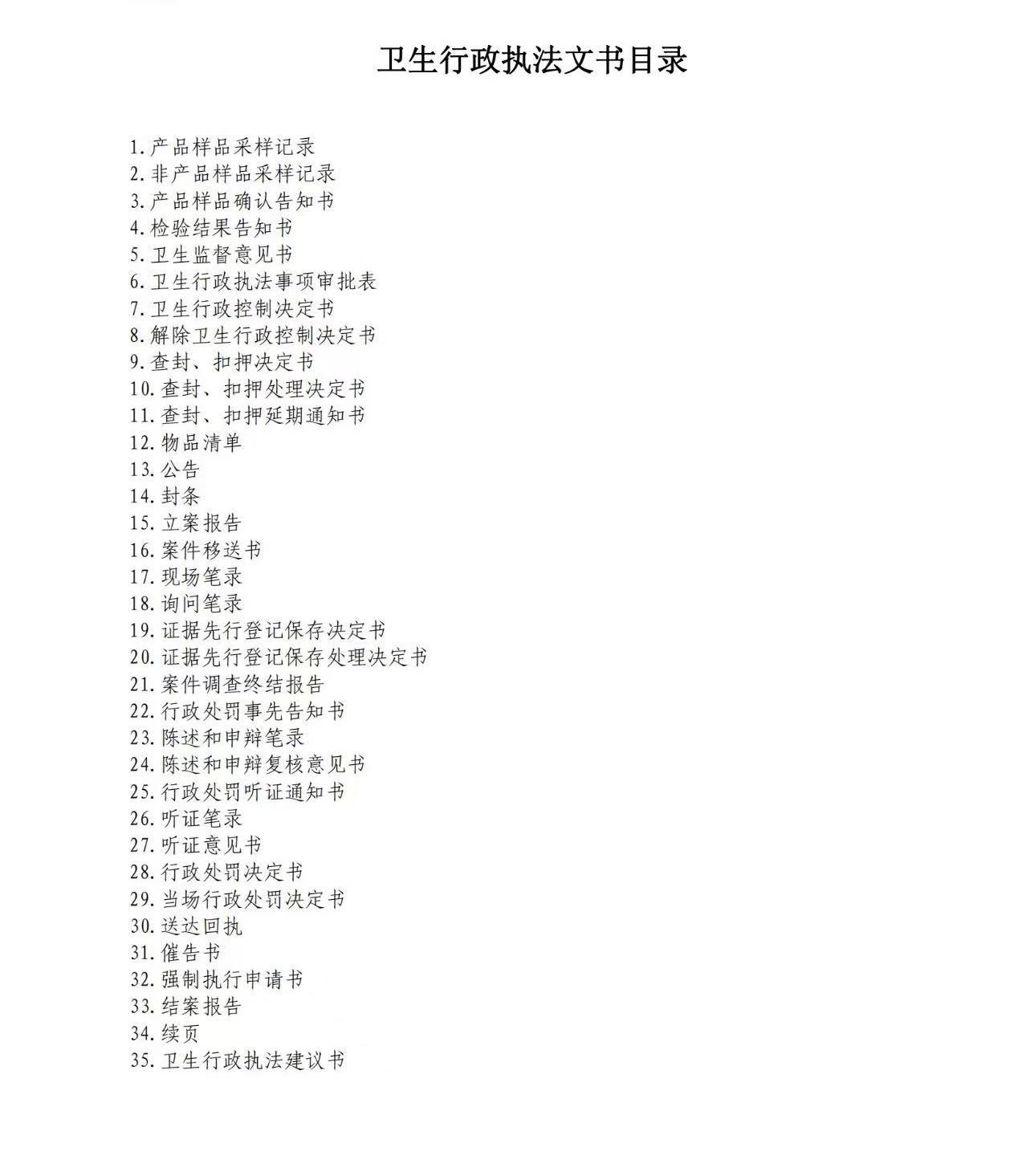 卫生行政执法文书