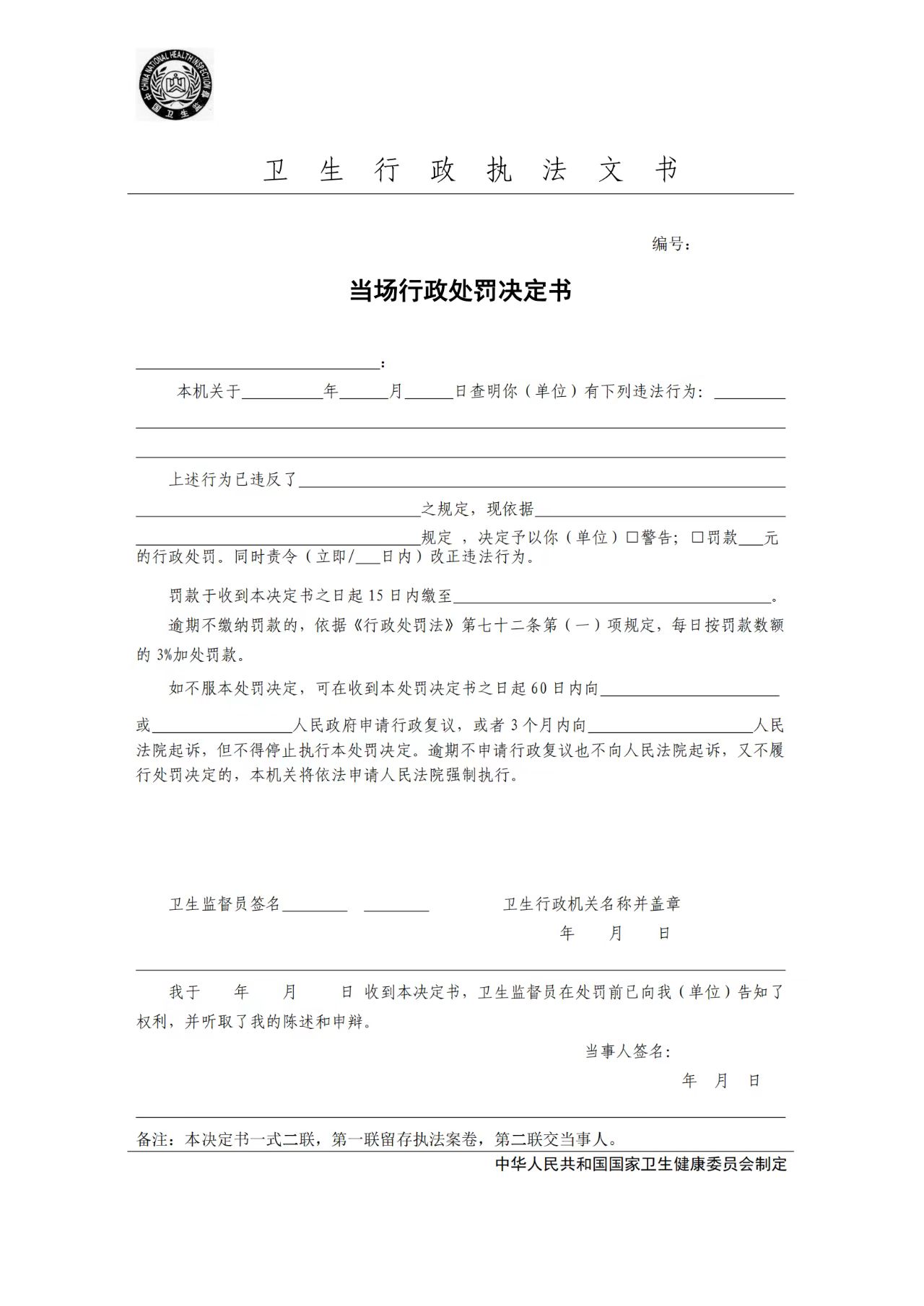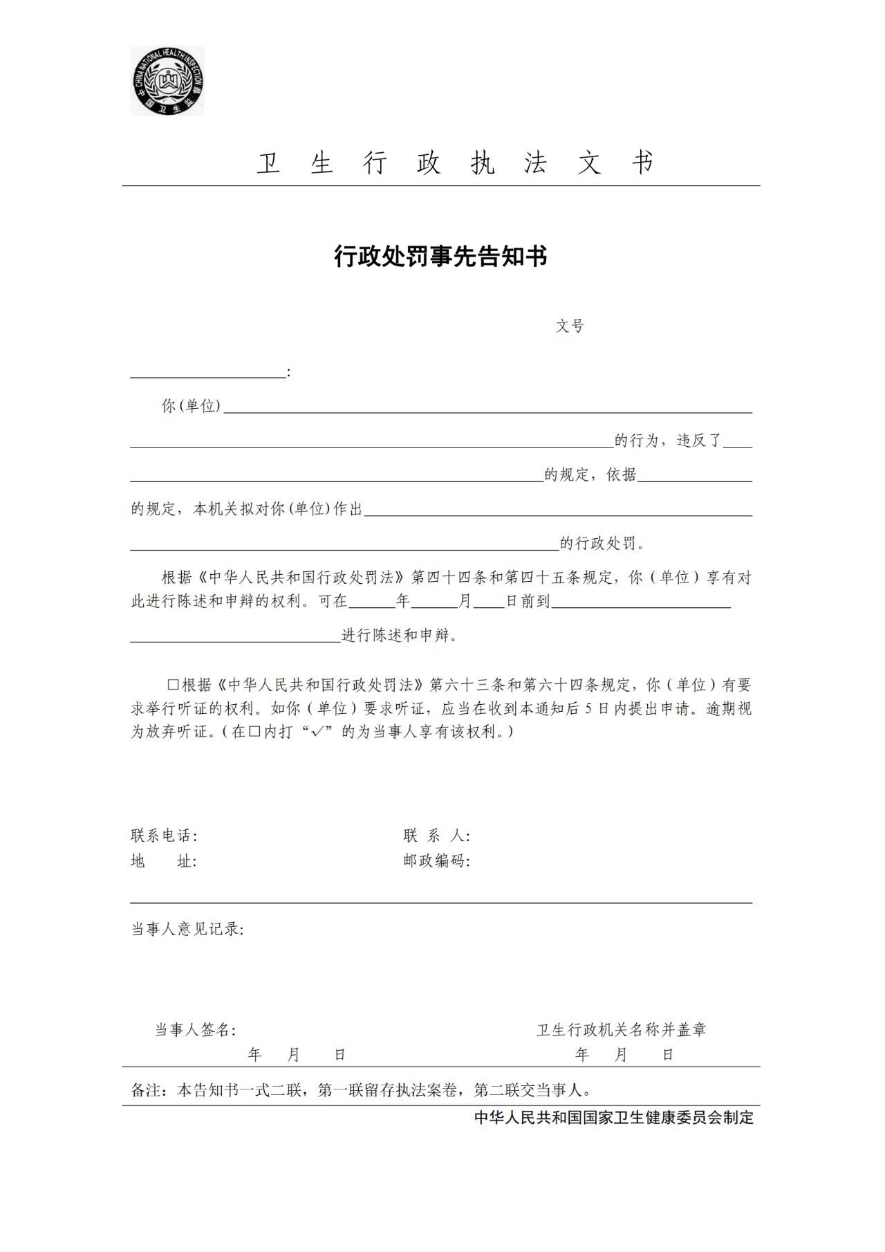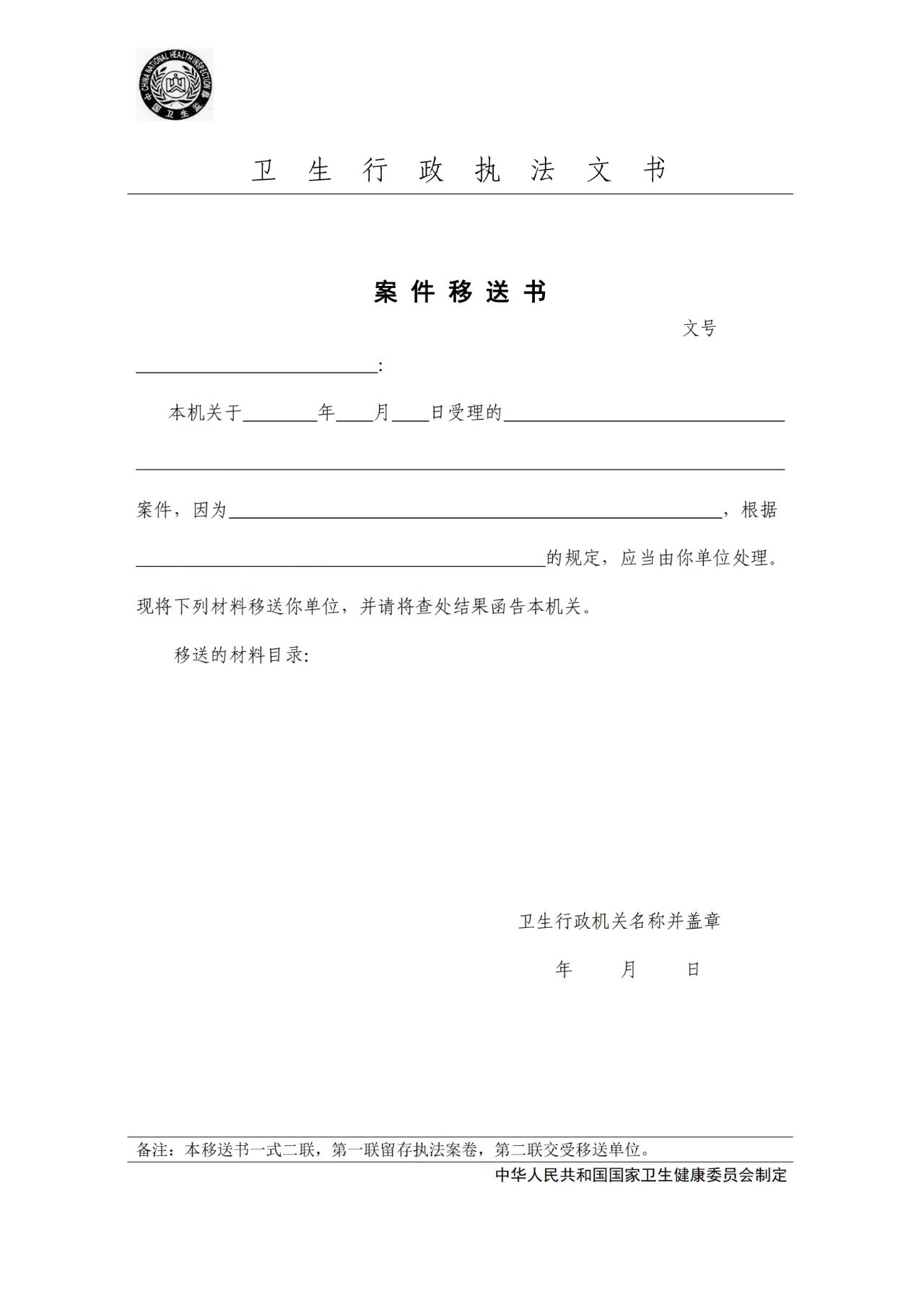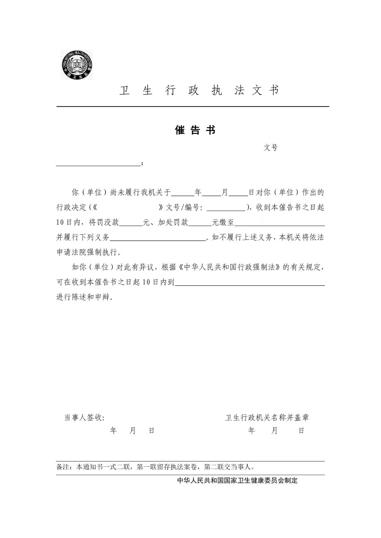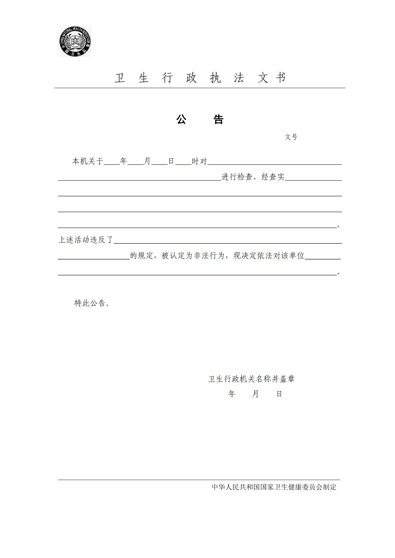 卫生行政执法文书