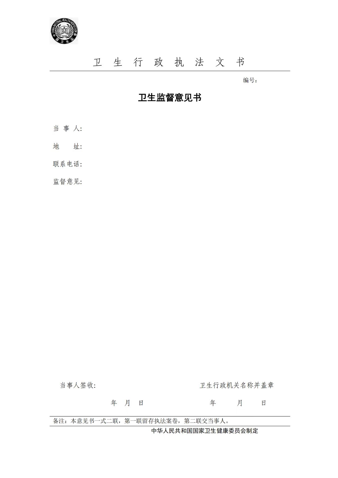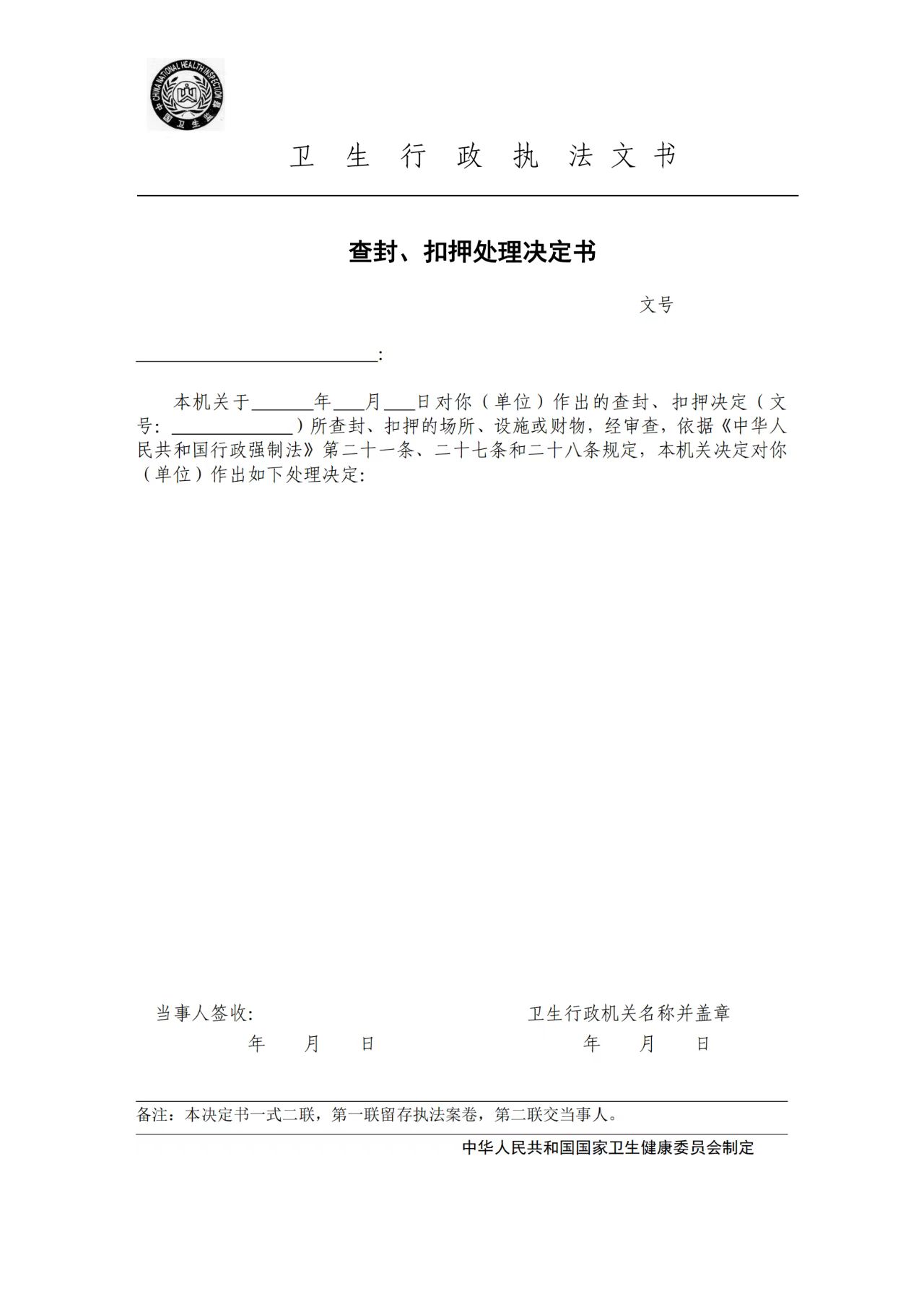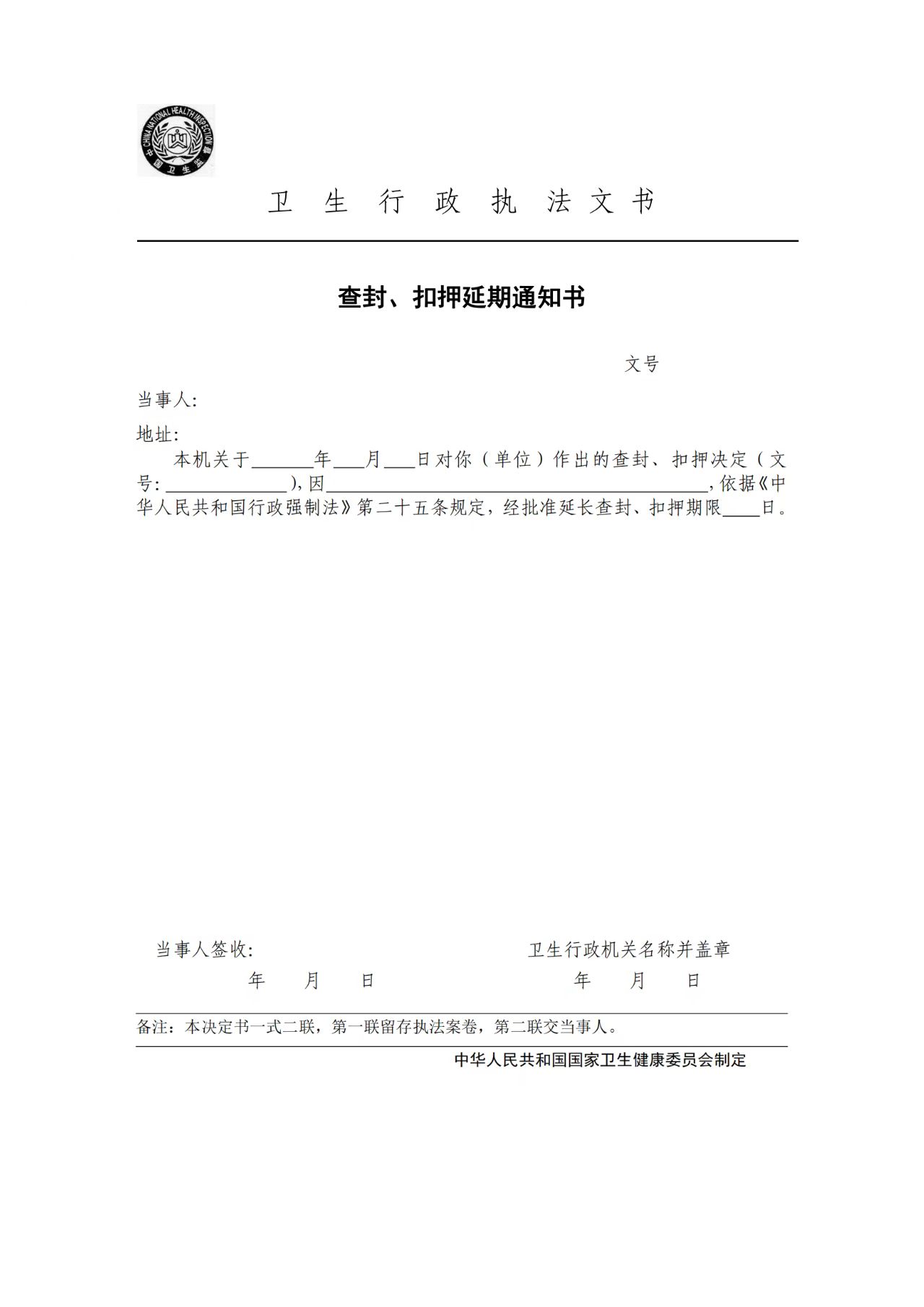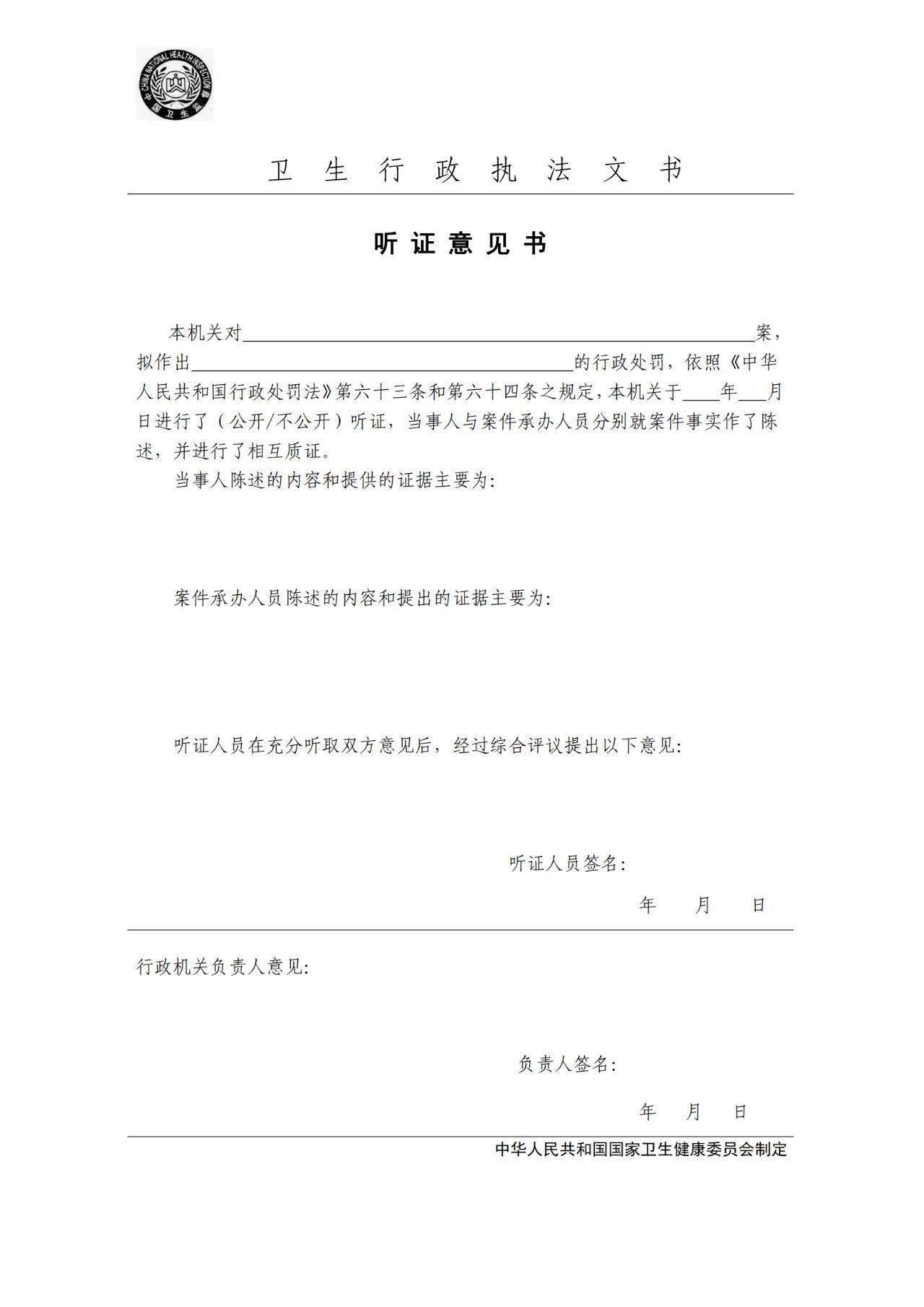 卫生行政执法文书