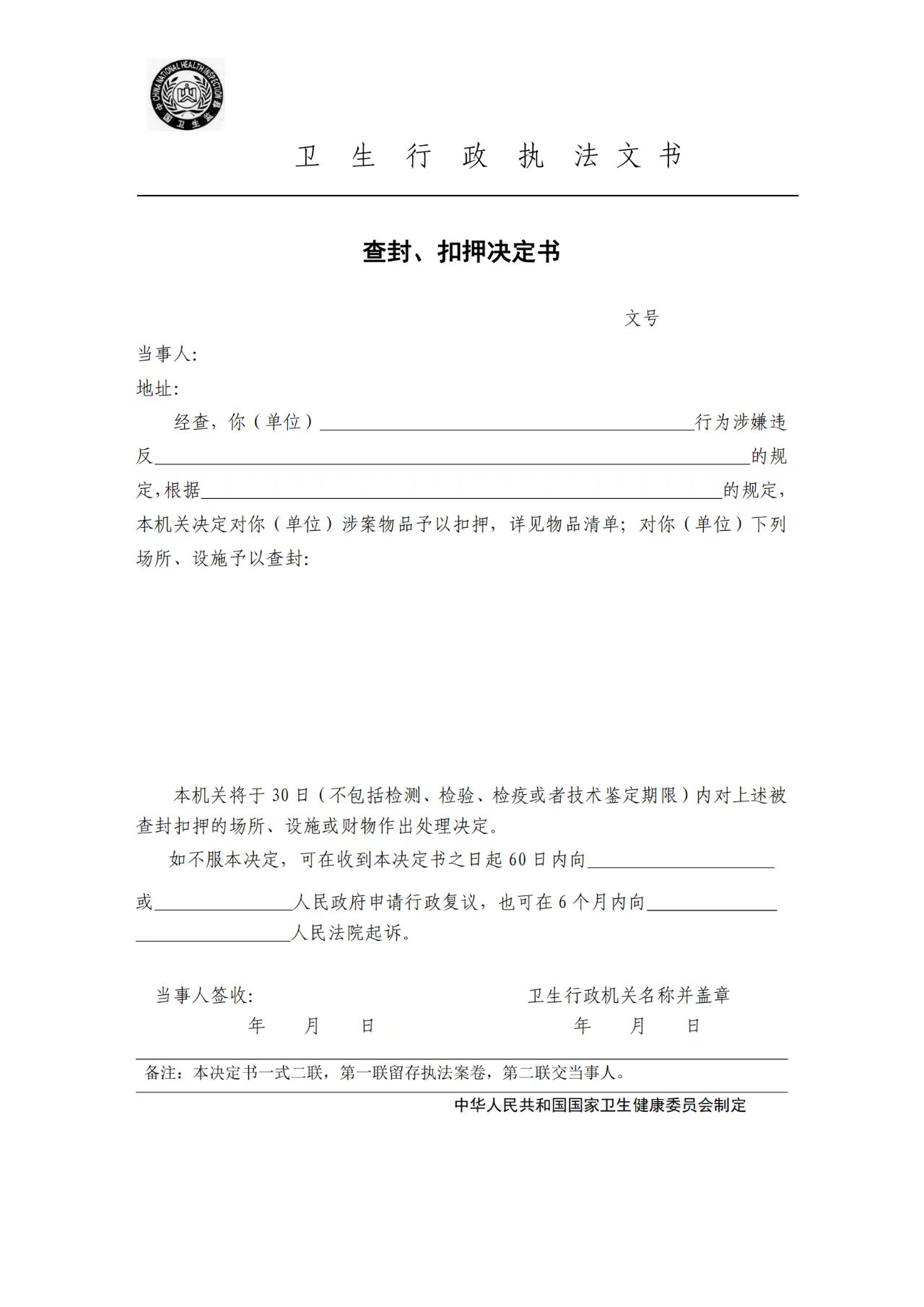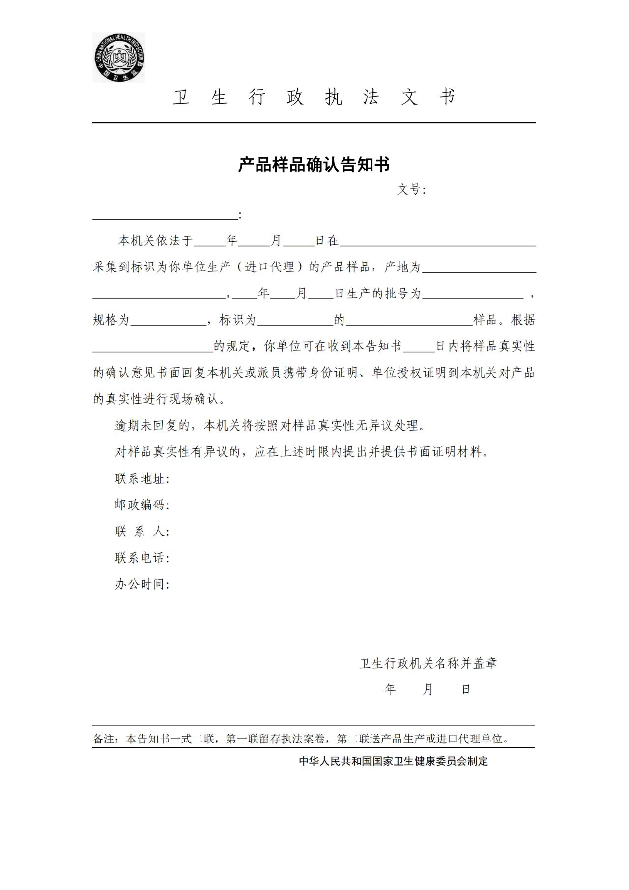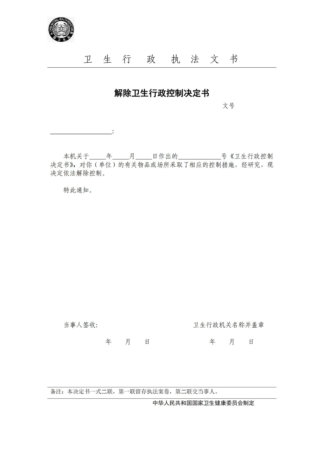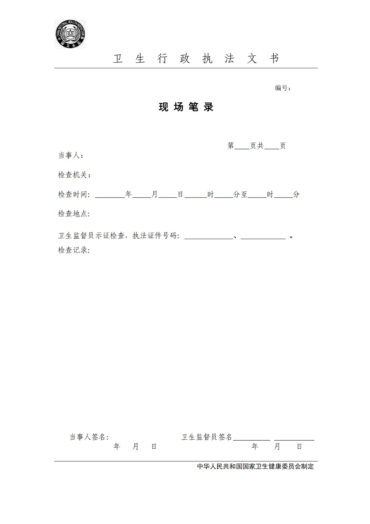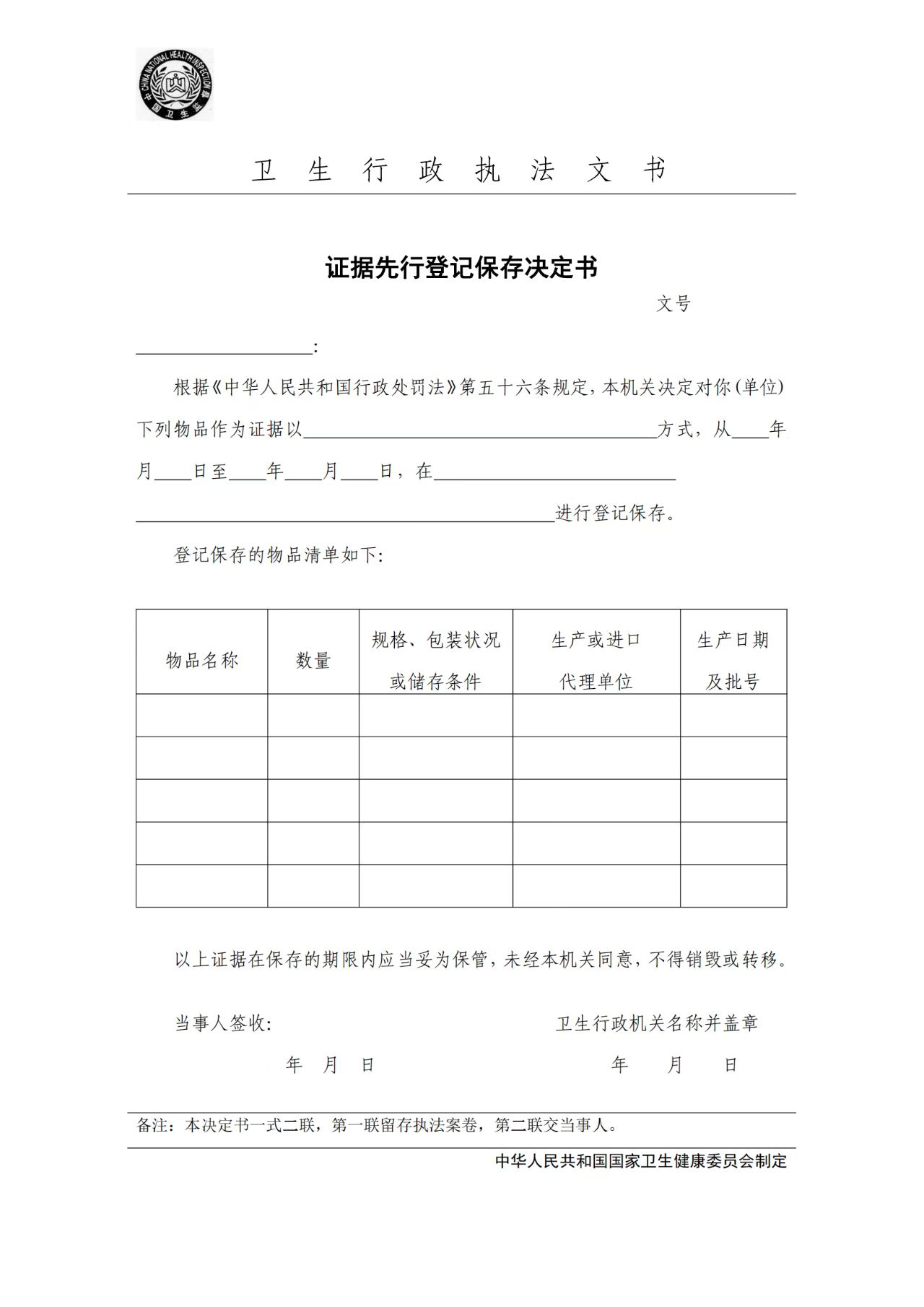 卫生行政执法文书