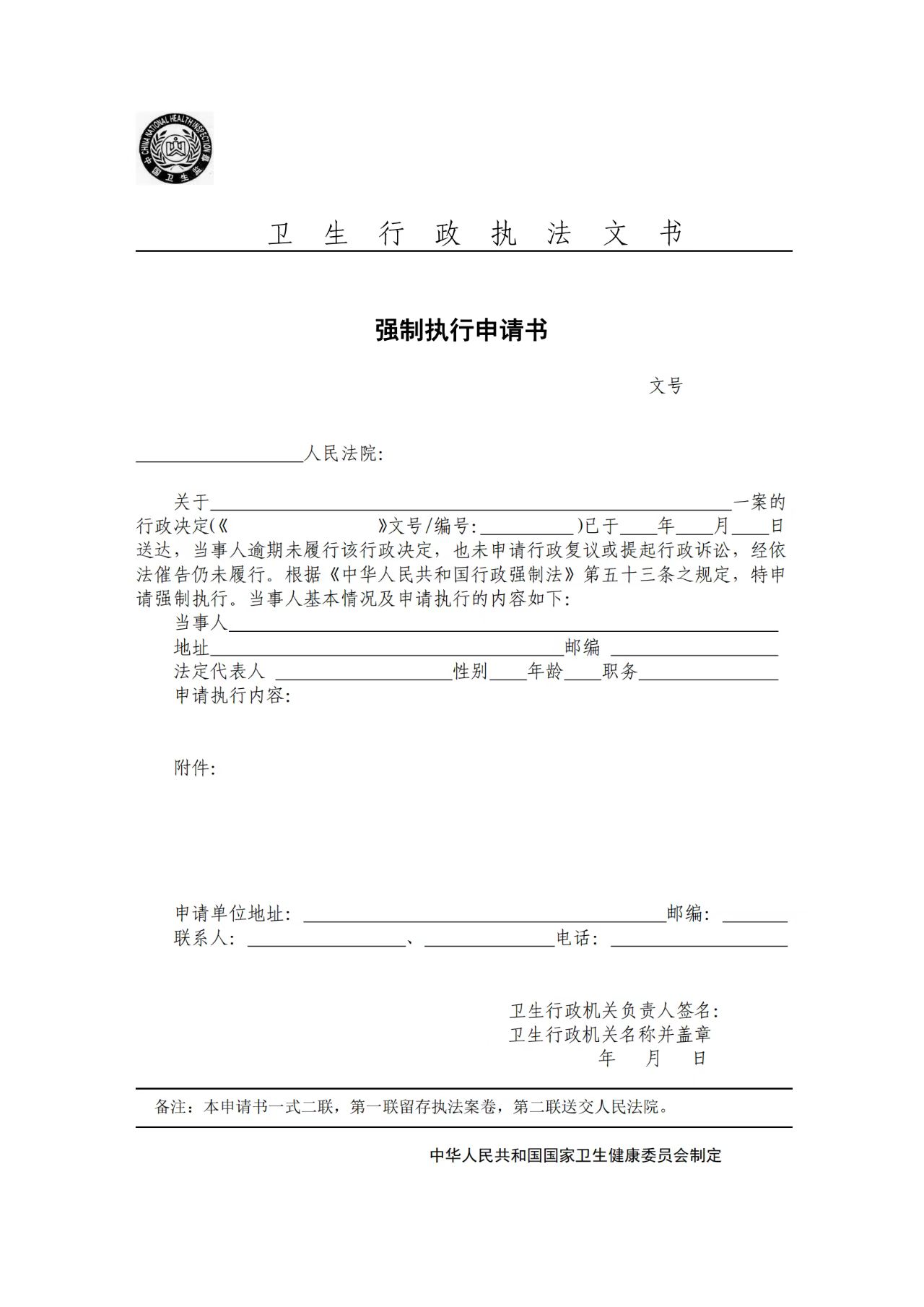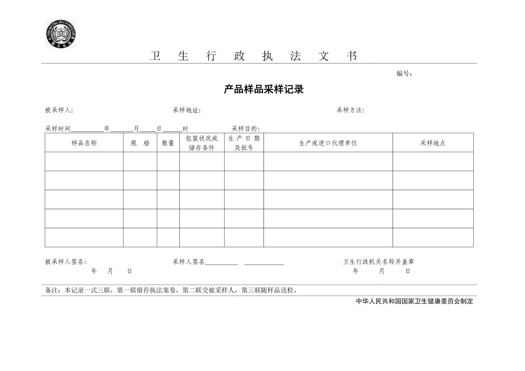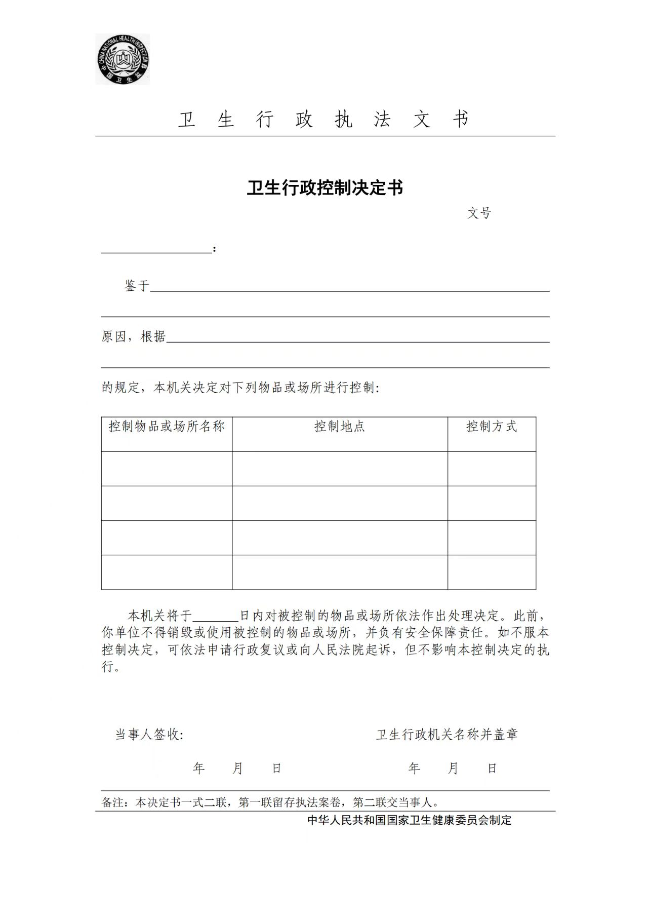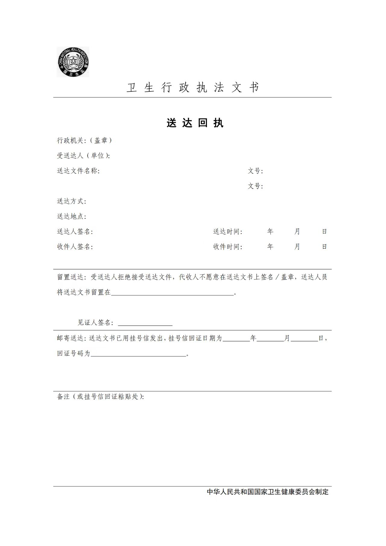 卫生行政执法文书