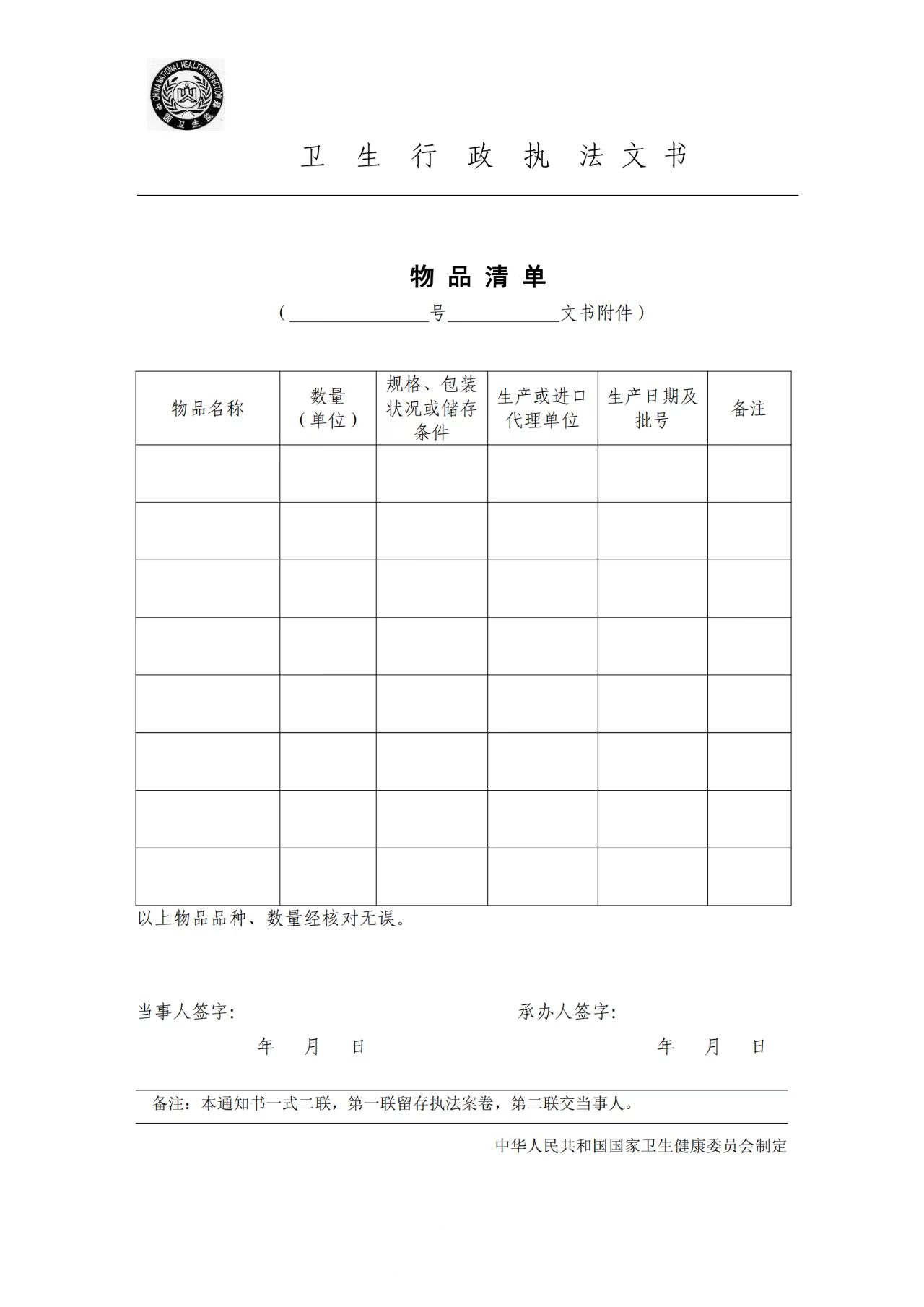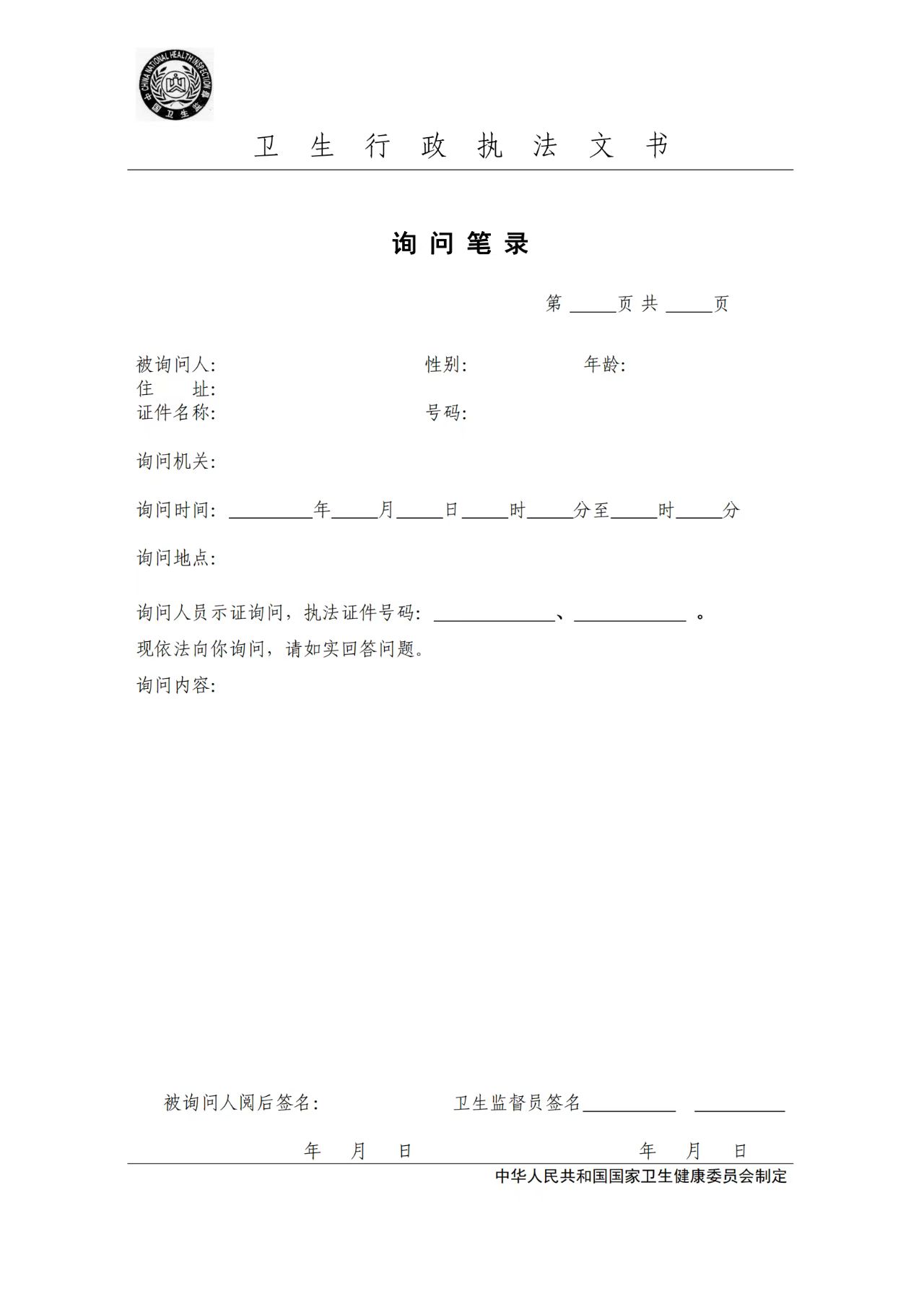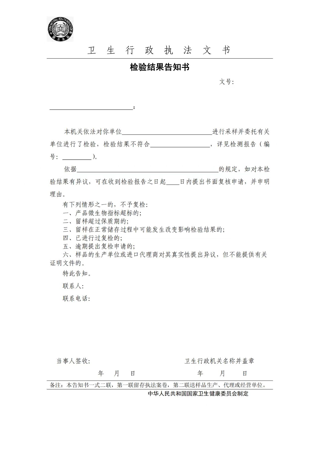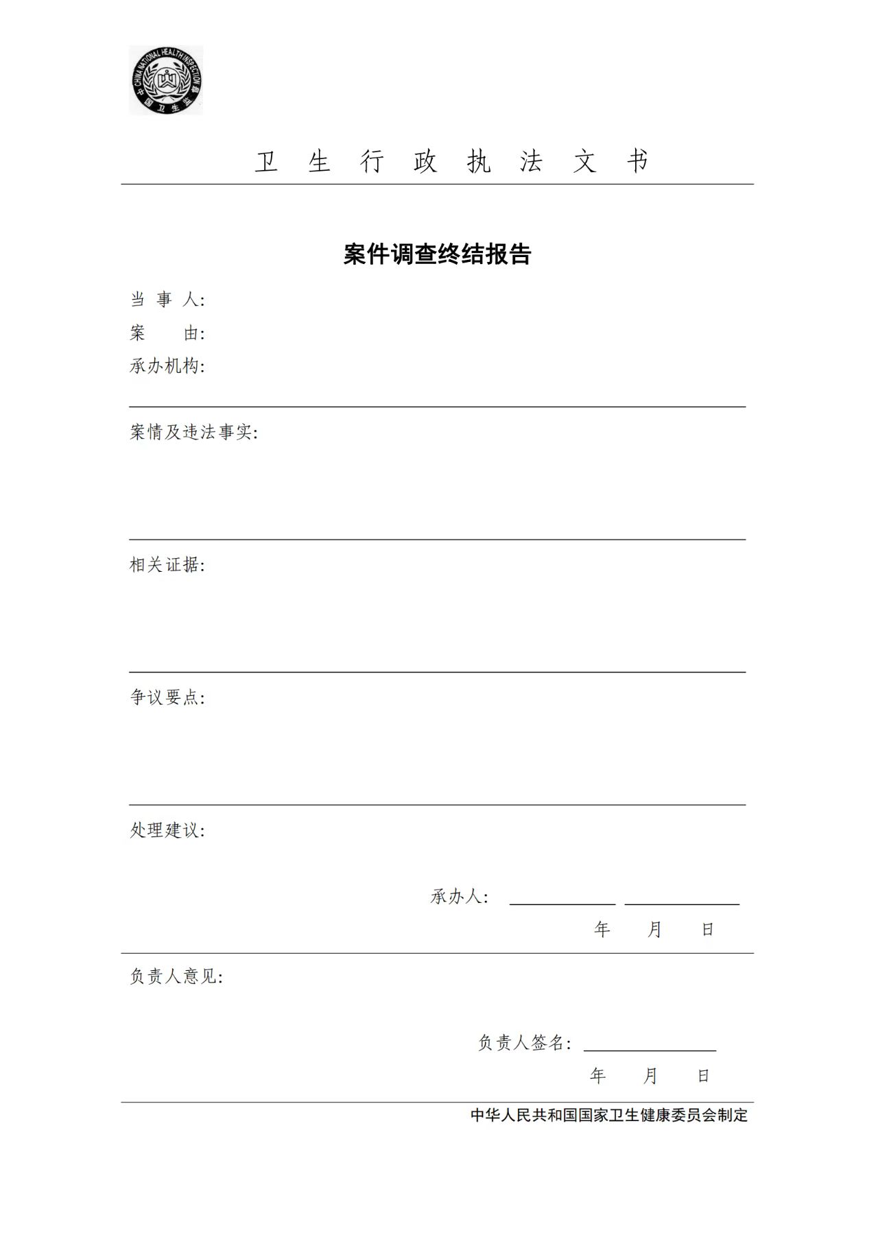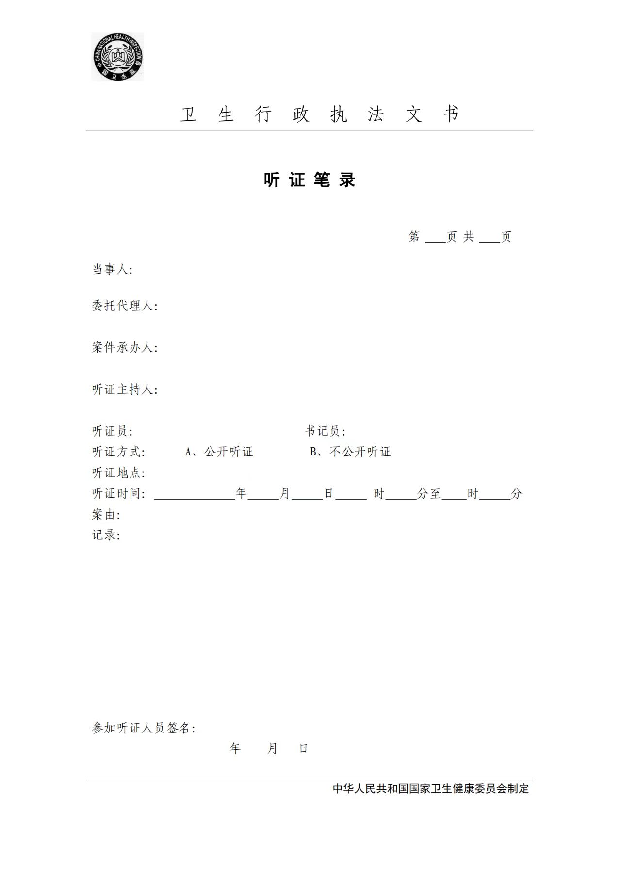 卫生行政执法文书