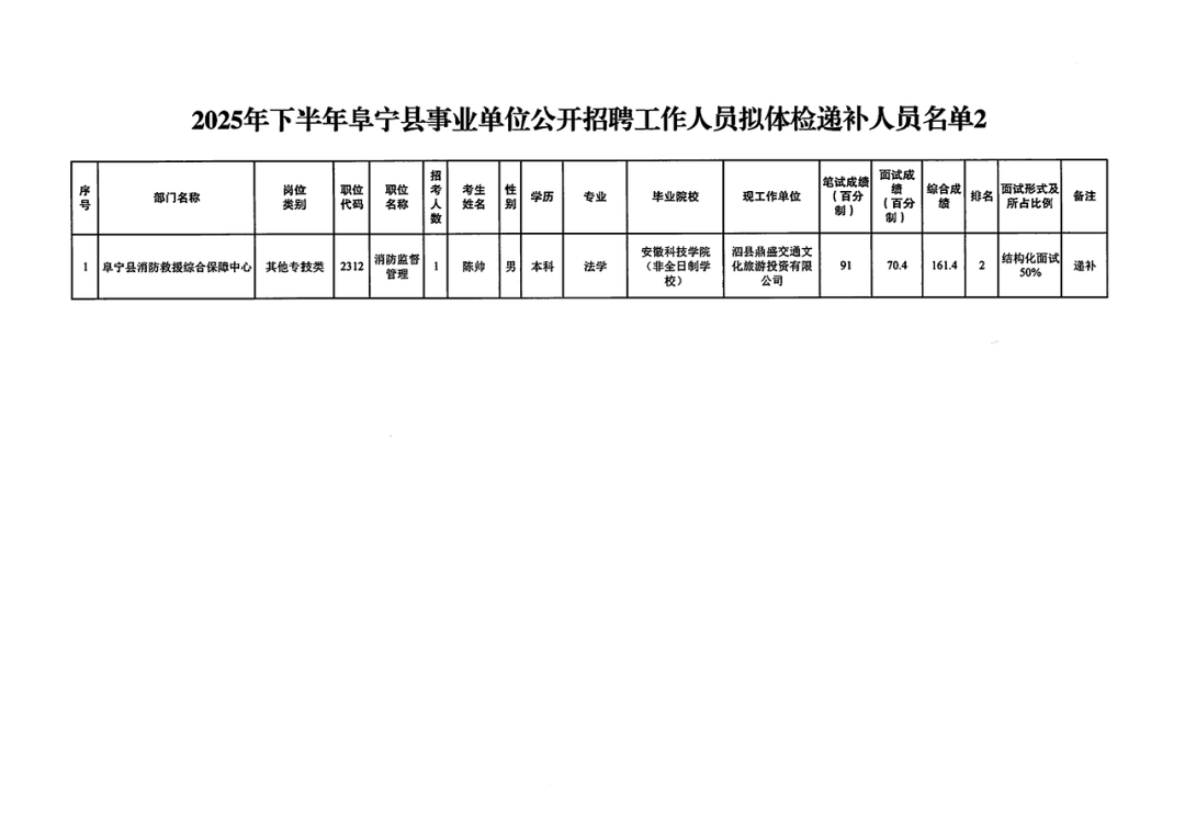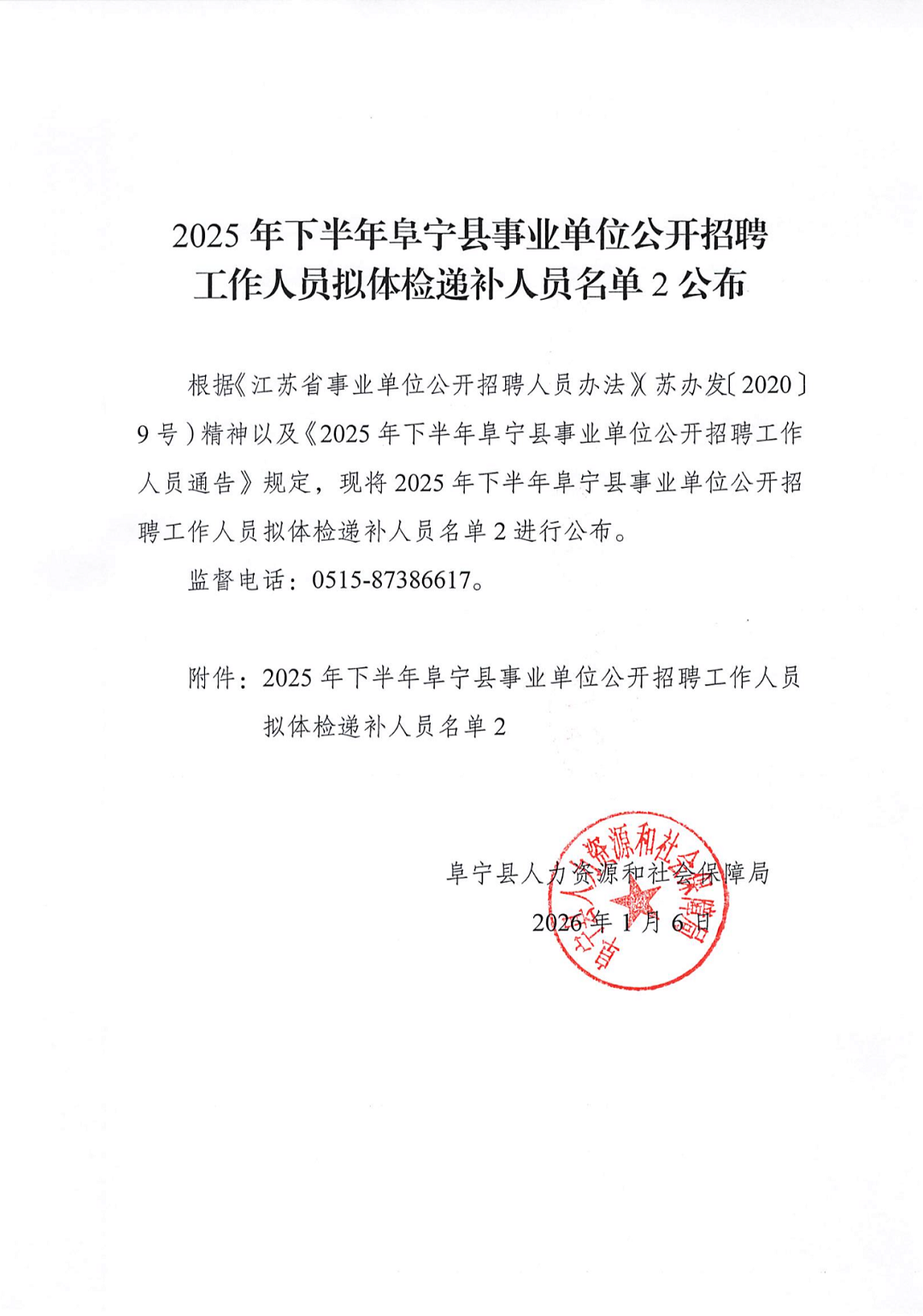 2025年下半年阜宁县事业单位公开招聘工作人员拟体检递补人员名单2公布