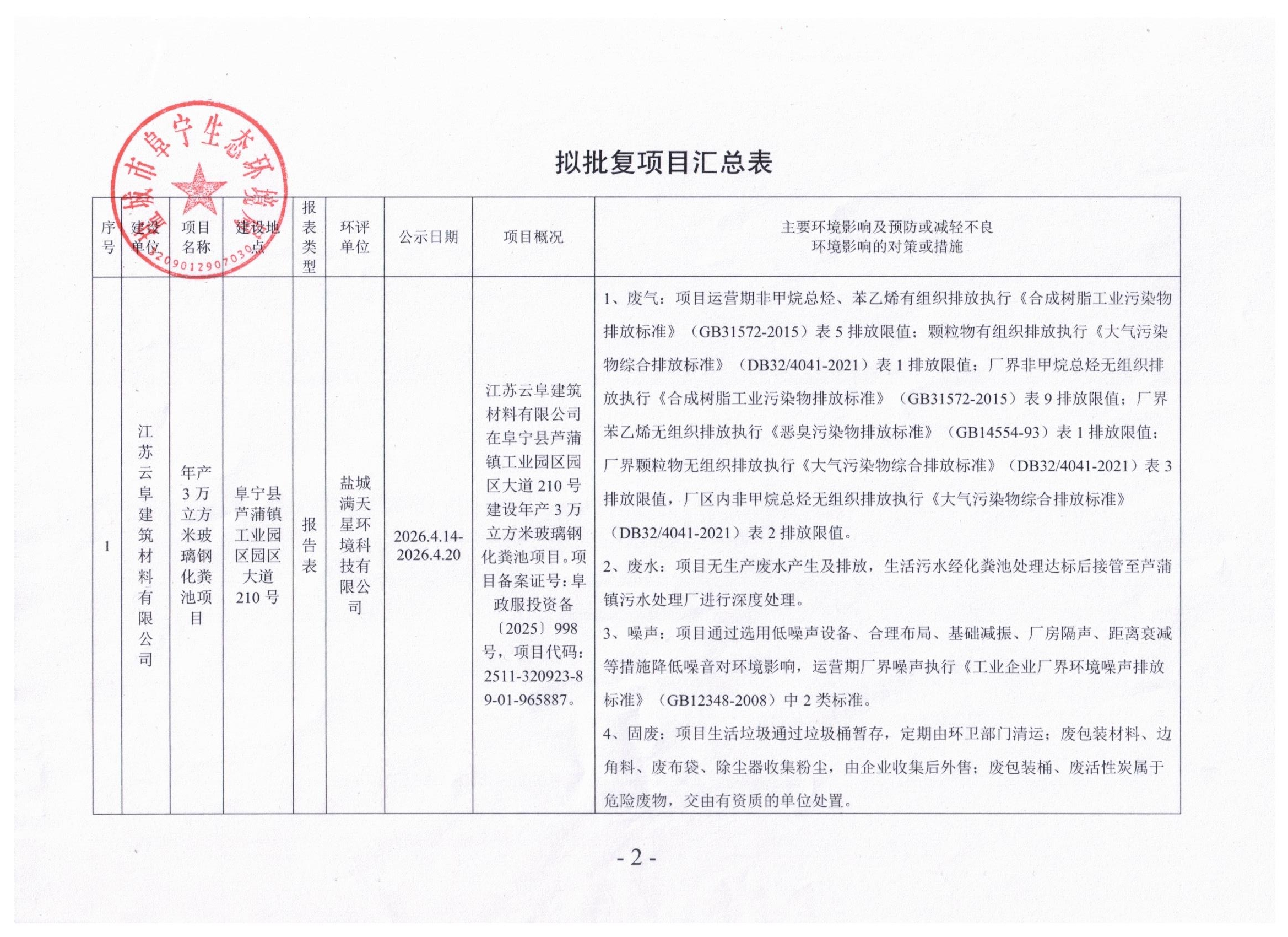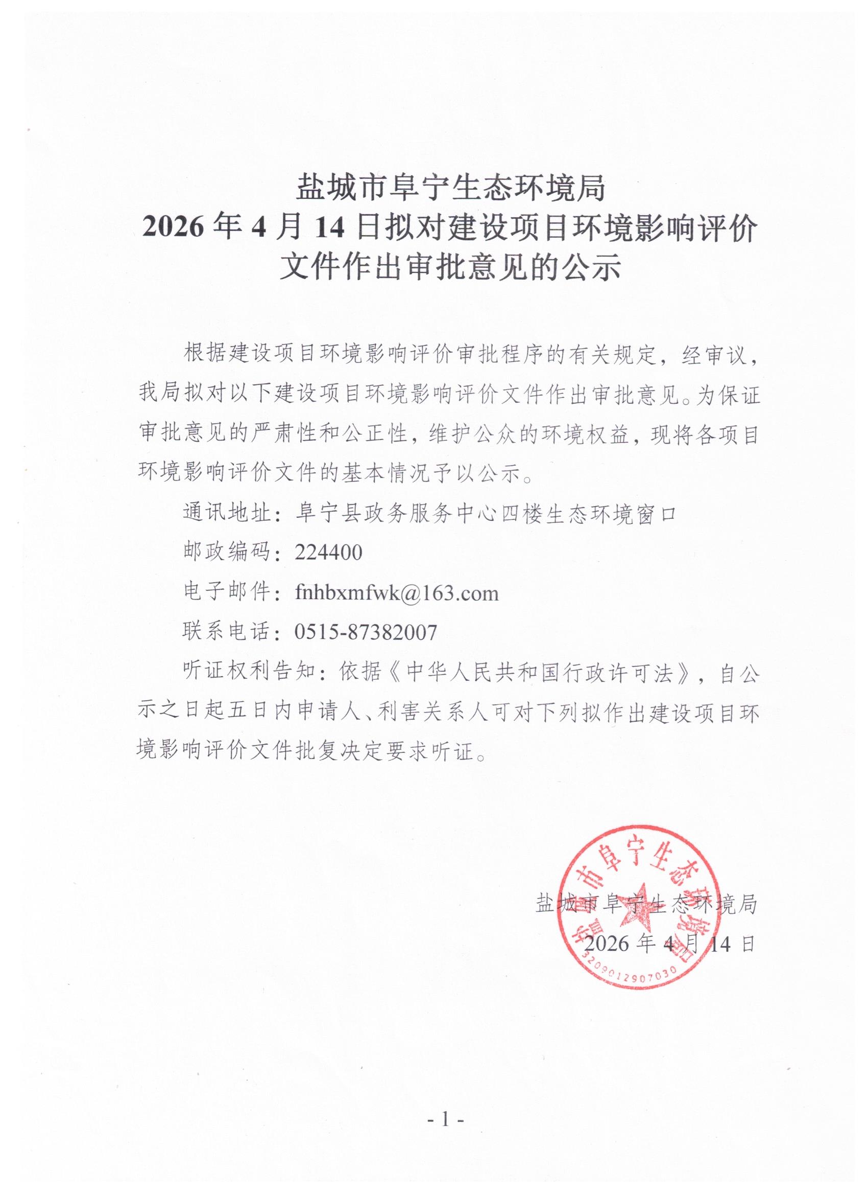 2026年4月14日拟对建设项目环境影响评价