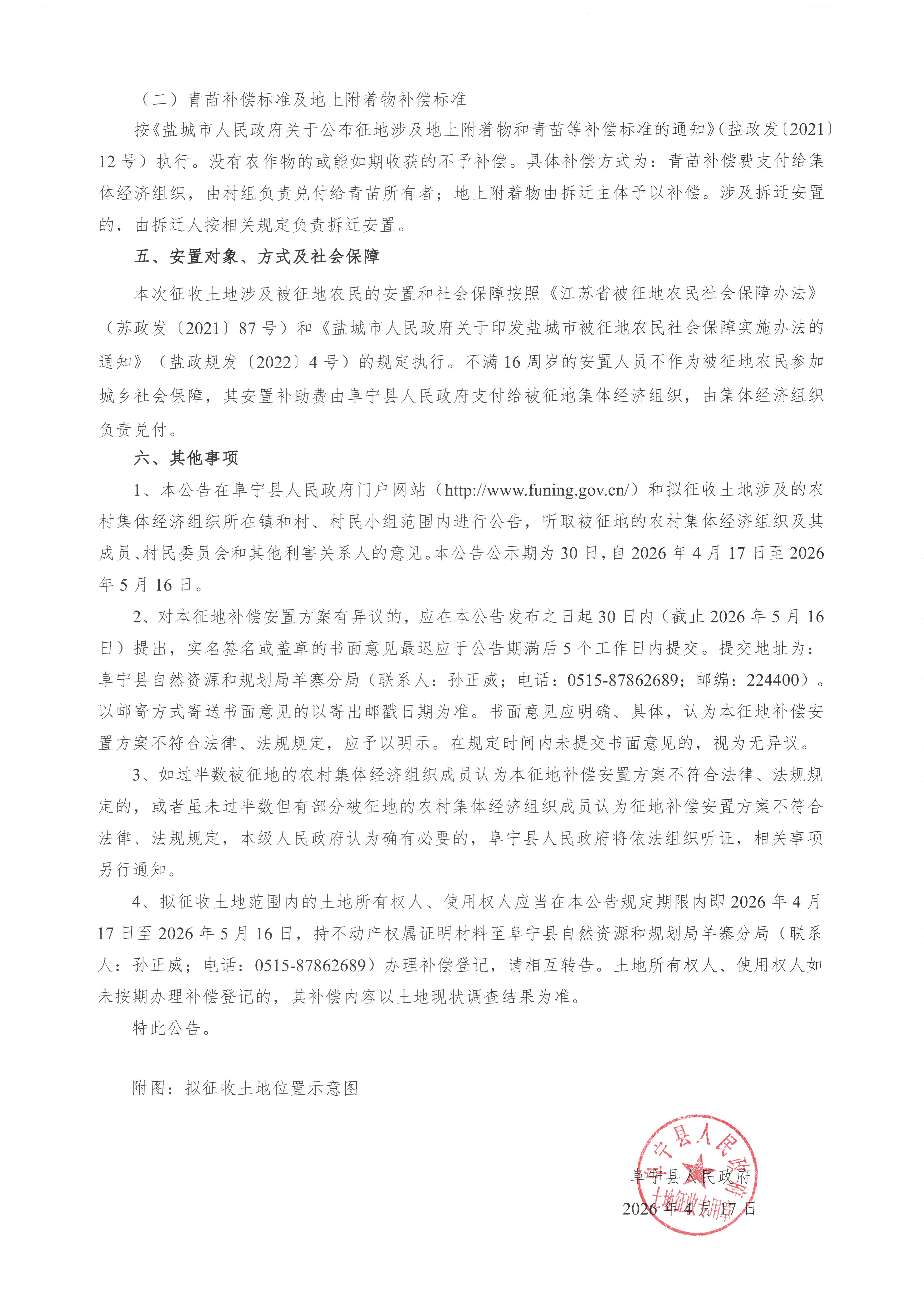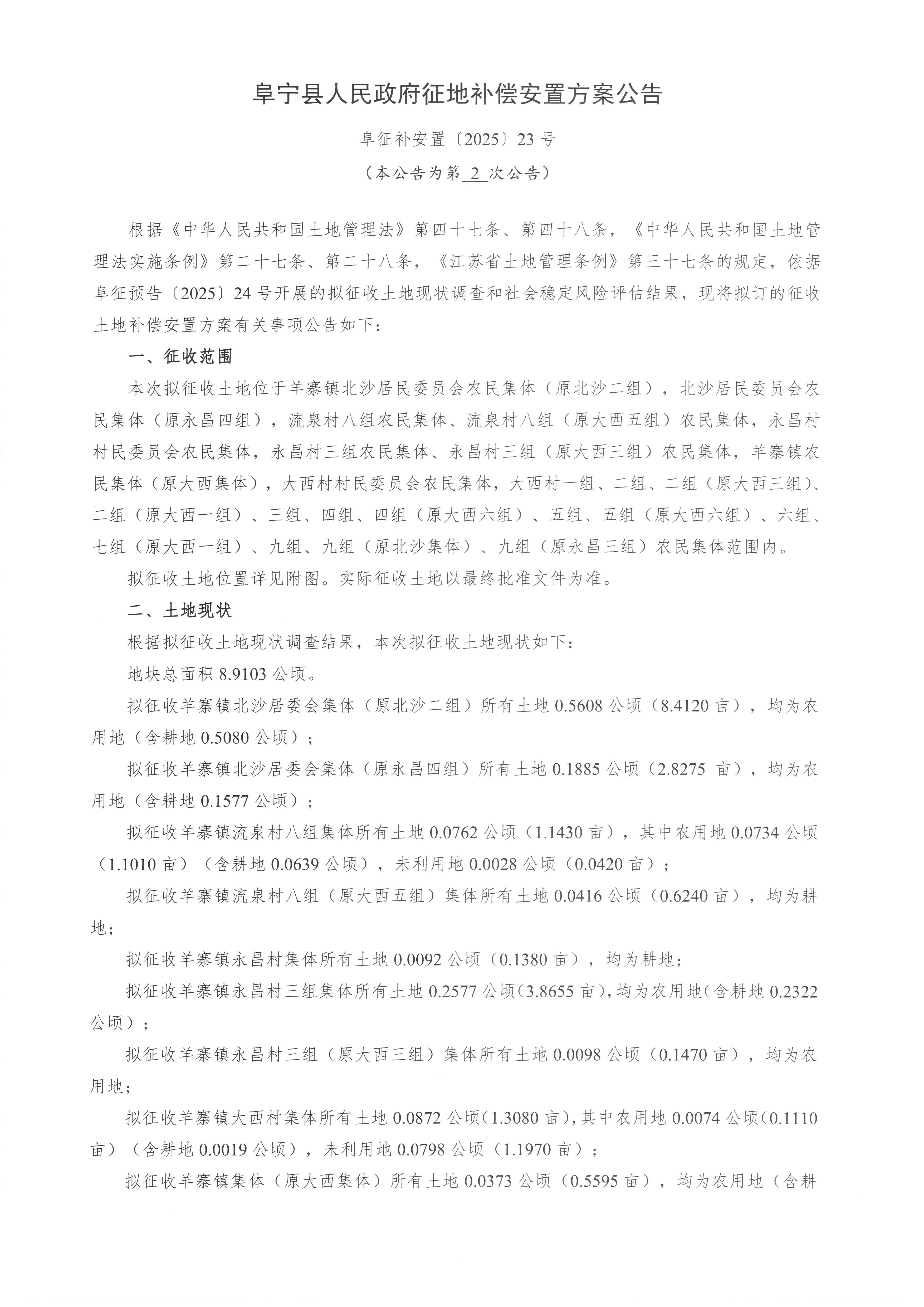 阜宁县人民政府征地补偿安置方案公告(阜征补安置〔2025〕23号)